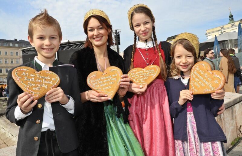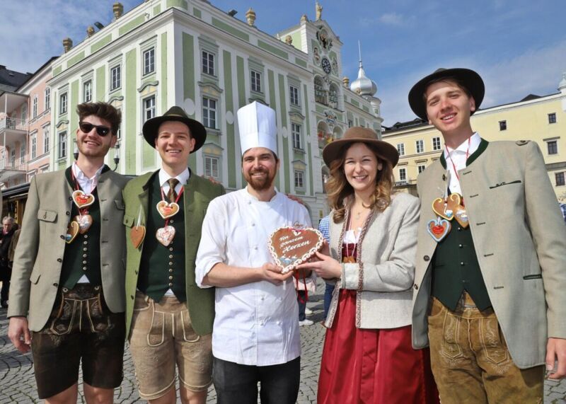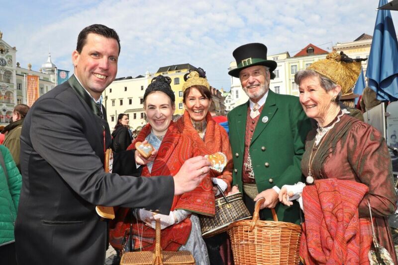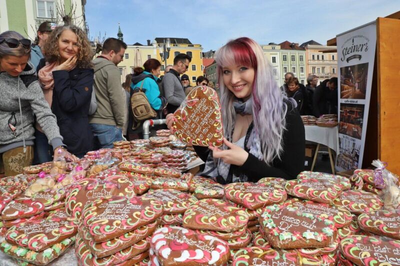 Traditionell wurde am Liebstattsonntag in der Stadtpfarrkirche die Bauernmesse zelebriert. Anschließend führte der Festzug zum Rathausplatz, wo beim Herzerlverteilen der Original Liebstattsonntag in Gmunden ausgebig gefeiert wurde.