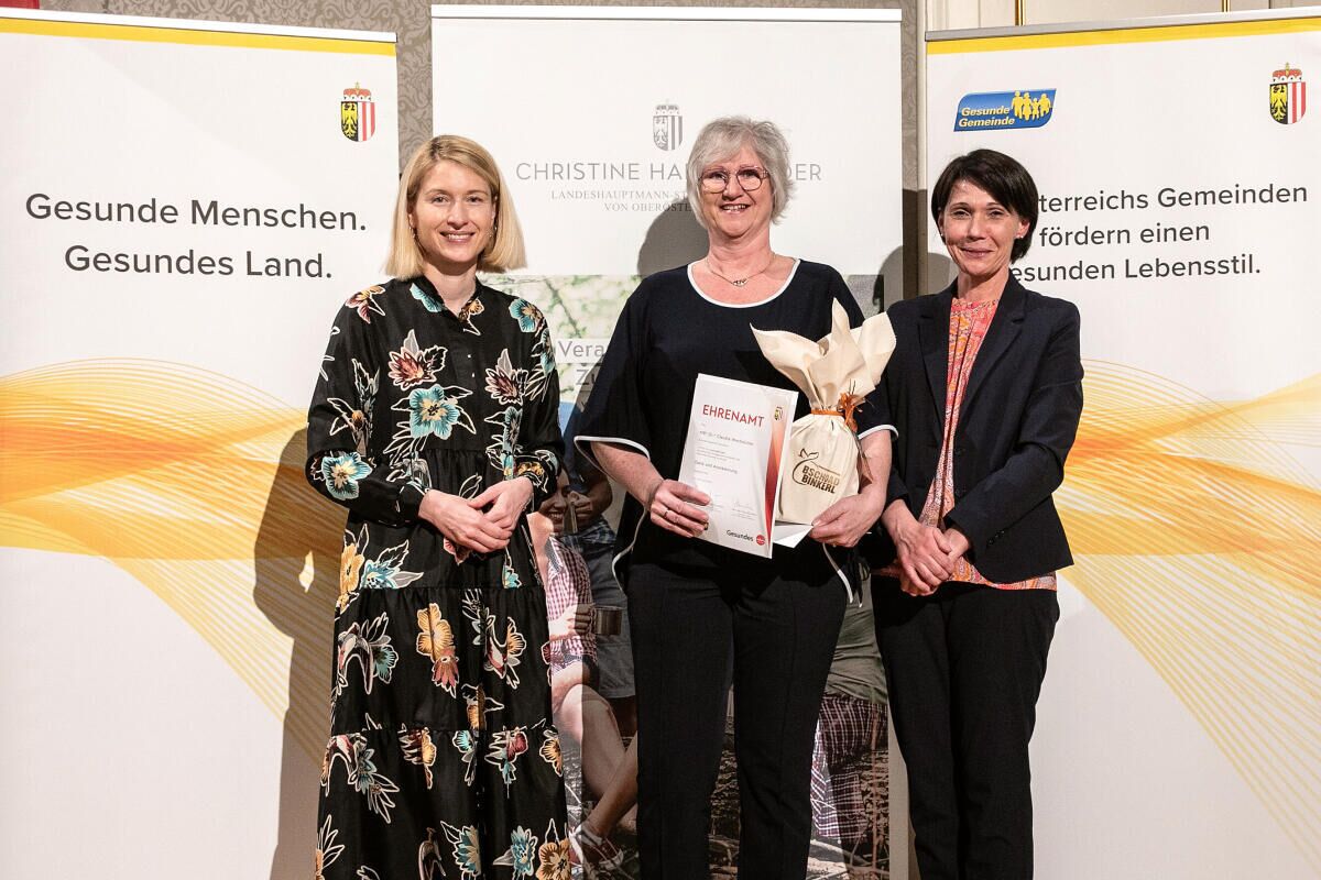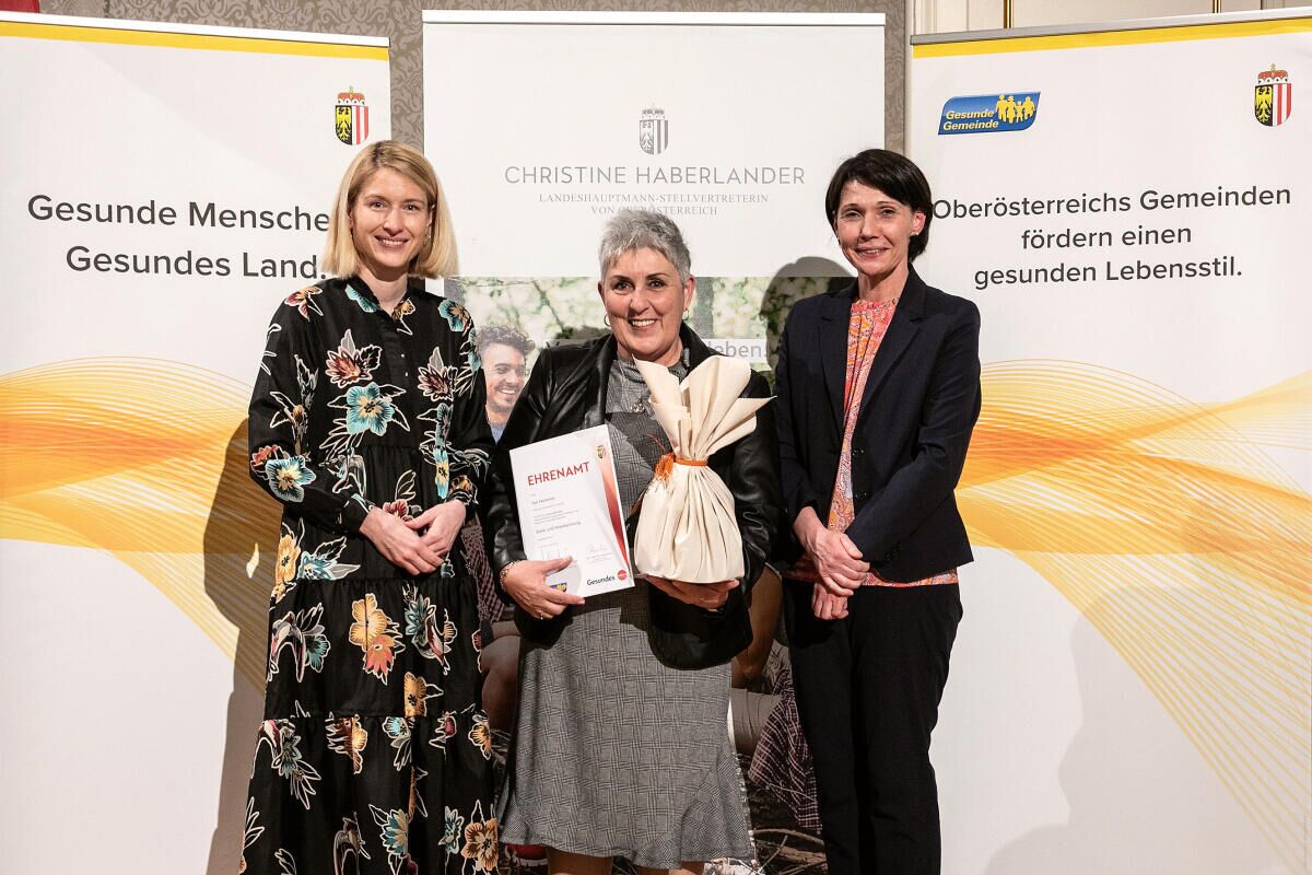 Zum 22. Mal wurde von Seiten des Landes OÖ der Gesundheitsförderungspreis im Rahmen des Netzwerkes Gesunde Gemeinde vergeben. Diese Auszeichnung ist in erster Linie Dank und Anerkennung für das Engagement, aber auch ein kleiner Anreiz für weitere innovative Projekte in der kommunalen Gesundheitsförderung. Die Übergabe erfolgte bei einer feierlichen Veranstaltung in den Redoutensälen durch Gesundheitsreferentin LH-Stellvertreterin Christine Haberlander und Bettina Blanka (Koordinatorin Gesundes OÖ).