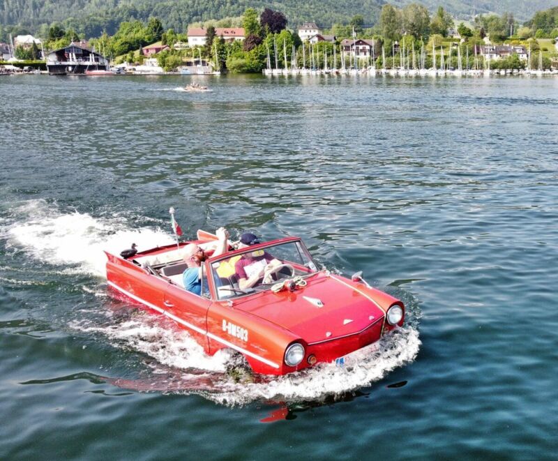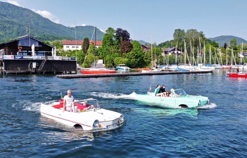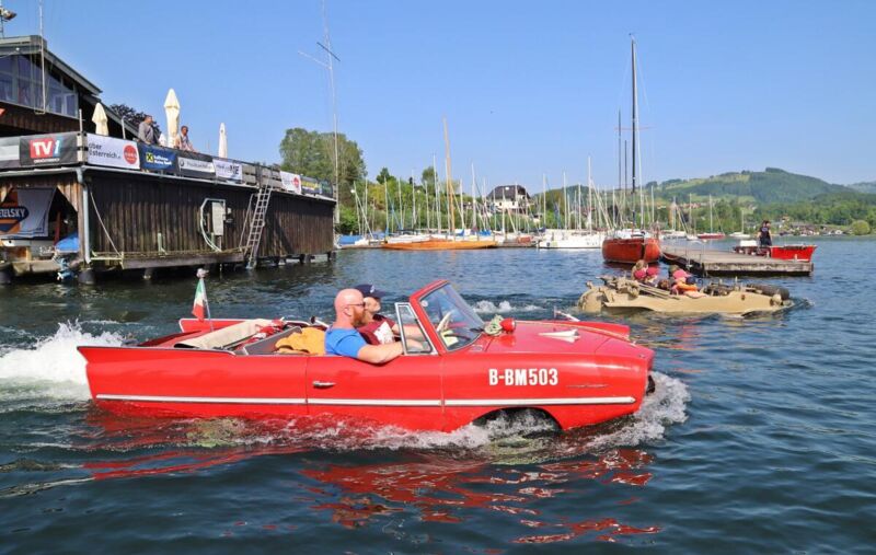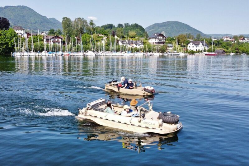 Organisiert von Michael Stelzl aus Linz treffen sich Besitzer von Schwimmwagen alljährlich an einem Salzkammergutsee. Am Pfingstwochenende war der Traunsee Gastgeber für die Amphiebienfahrzeuge. Bei Traumwetter gingen die Schwimmwagen am Samstag in Traunkirchen zu Wasser und bei der öffentlichen Slipanlage in Altmünster wieder an Land.