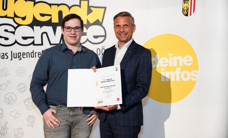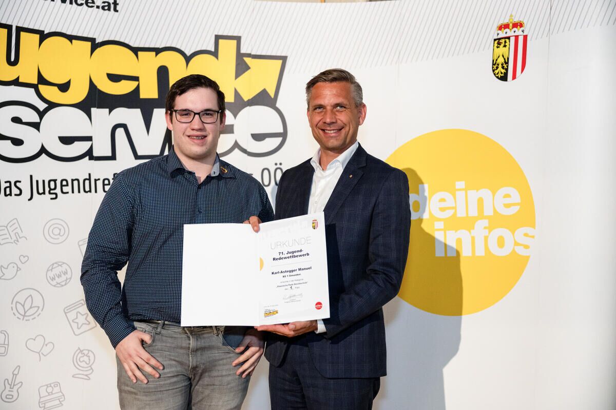 Beim heurigen Landesjugendredewettbewerb wurden wieder junge Redetalente aus ganz Oberösterreich ausgezeichnet. 77 Teilnehmer präsentierten ihre Reden in den Kategorien „Klassische Rede“, „Sprachrohr“ und „Spontanrede“. Mit dabei auch der Gmundner Manuel Karl-Astegger. Der Schüler der BS 1 Gmunden sicherte sich in der Kategorie „Klassische Rede Berufsschule“ den ersten Platz mit der Rede „KI – Von Science Fiction zur Realität“ und damit das Ticket nach Wien. „Gerade in Zeiten von digitalen Echokammern und Bubbles braucht es junge Menschen, die Mut haben, ihre Gedanken zu äußern und zu ihrer Meinung zu stehen. Das ist Grundvoraussetzung für eine funktionierende Demokratie. Wir wollen Möglichkeiten und Bühnen schaffen, damit junge Menschen ihre Positionen vertreten können. Der Redewettbewerb ist dafür ein wichtiges Zeichen“, so Jugend-Landesrat Wolfgang Hattmannsdorfer.