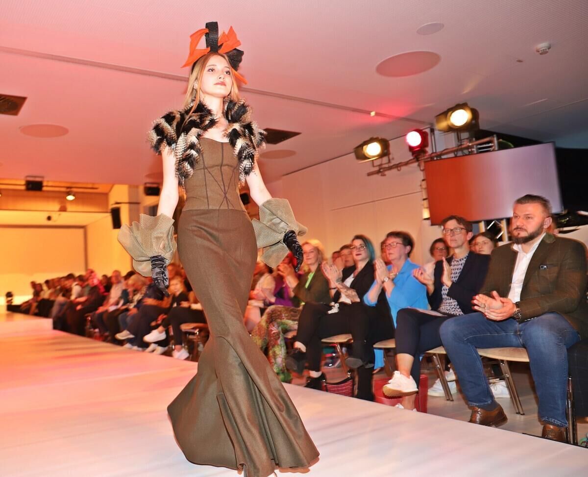 Bei allen drei Veranstaltungen am Freitag, 19., und Samstag, 20. April, prangte das Schild „Ausverkauft“ an der Tür. Die Glücklichen, die sich ein Ticket sichern konnten, erlebten Kollektionen, von den Schülern selbst entworfen, genäht und zuletzt am Laufsteg professionell präsentiert.