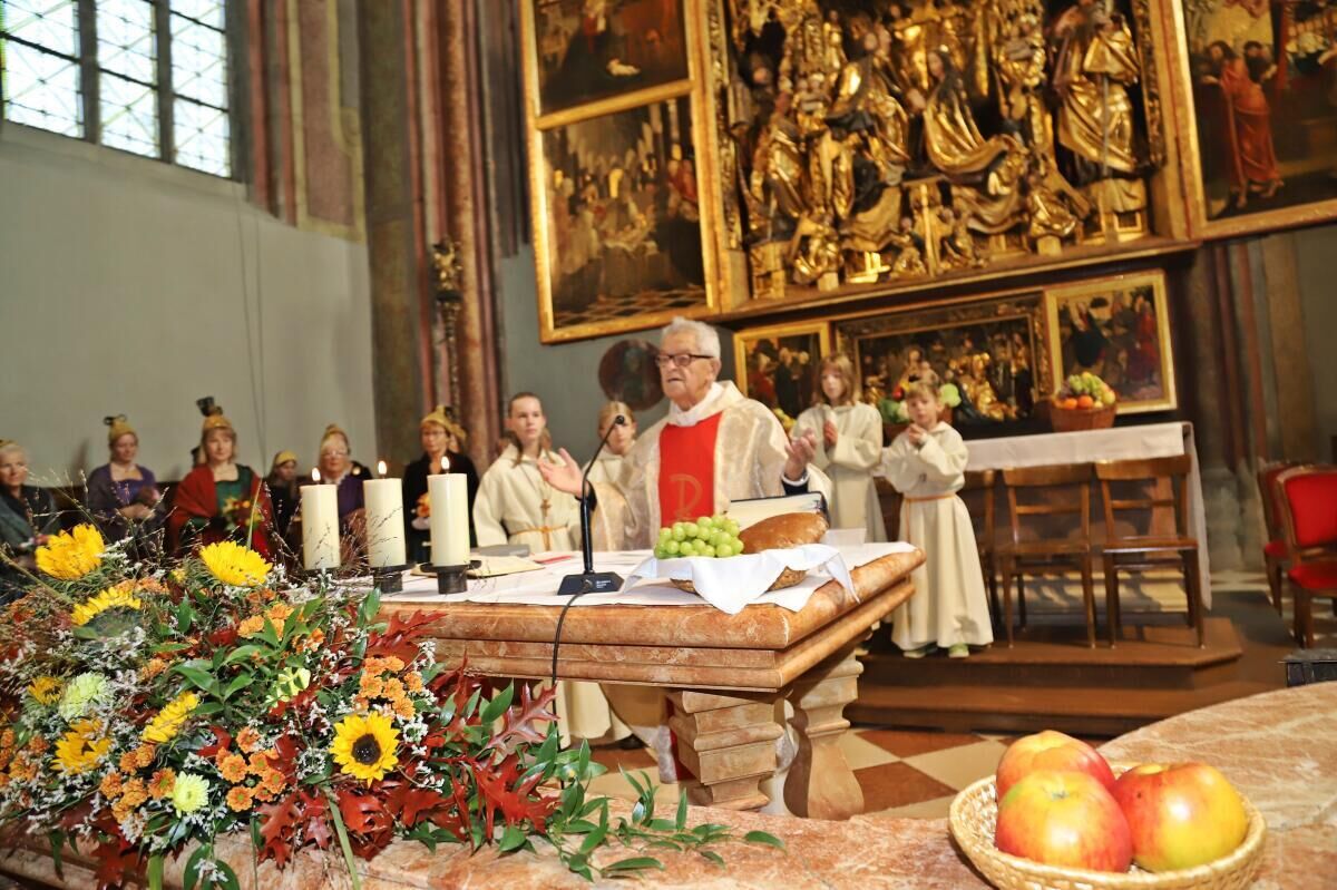 Der farbenfrohe Festzug startete am Pfarrhof und führte mit Erntekrone, Jubilaren, der Musikkapelle, den Goldhaubenfrauen und dem Trachtenverein D’Wolfganger zur Wallfahrtskirche St. Wolfgang. Pfarrer Josef Aichrieder aus Mondsee zelebrierte den feierlichen Gottesdienst, der musikalisch von der Orts- und Bauernmusik St. Wolfgang begleitet wurde. Die festliche Atmosphäre, getragen von Tradition und Gemeinschaft, machte das Erntedankfest einmal mehr zu einem besonderen Ereignis im Jahreskalender der Gemeinde.