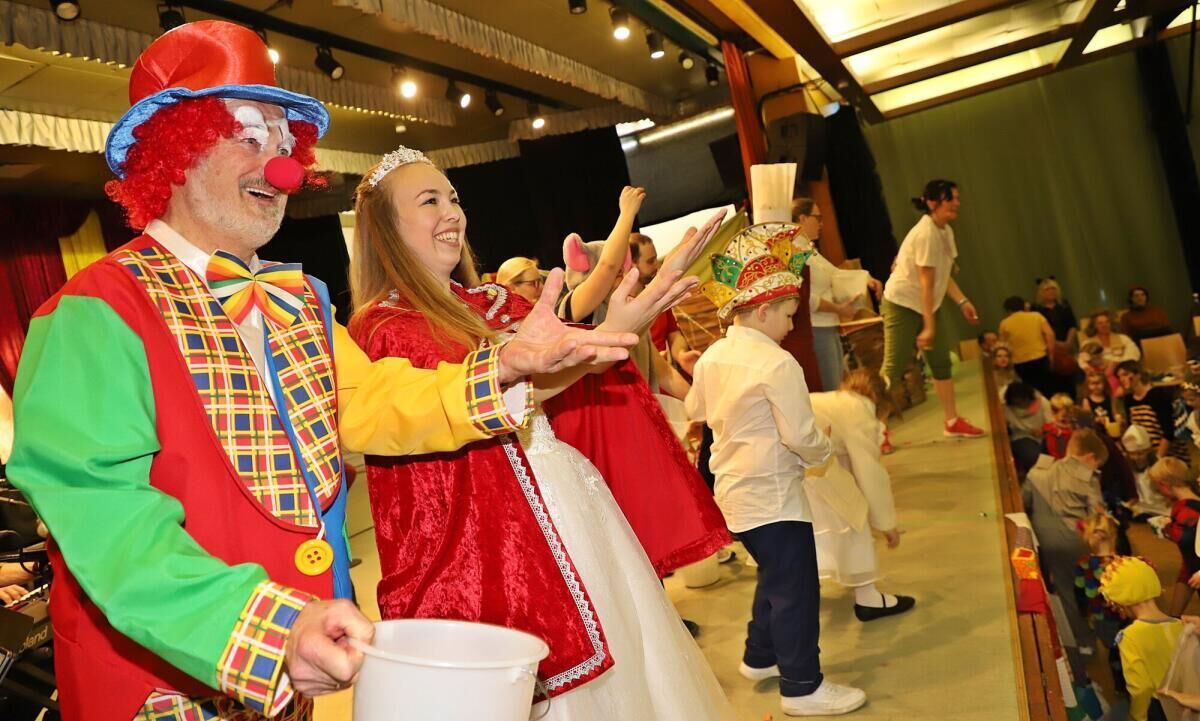 Auf und vor der Bühne zeigten sich Prinzessinnen, Feen, Zauberer, Wikinger, Clowns, Tiere und viele weitere Figuren. Gemeinsam mit dem großen und dem kleinen Ebenseer Prinzenpaar, der Minigarde und dem Faschingsrat erlebten die Kinder ein rund zweistündiges Bühnenprogramm. Im Mittelpunkt stand die magische Spielzeugkiste, aus der immer neue Figuren und Szenen entstanden. Auch Pfarrer Alois Rockenschaub wirkte aktiv am Geschehen mit. Für die musikalische Begleitung sorgte wie in den vergangenen Jahren die Band um Hannes Fellner.