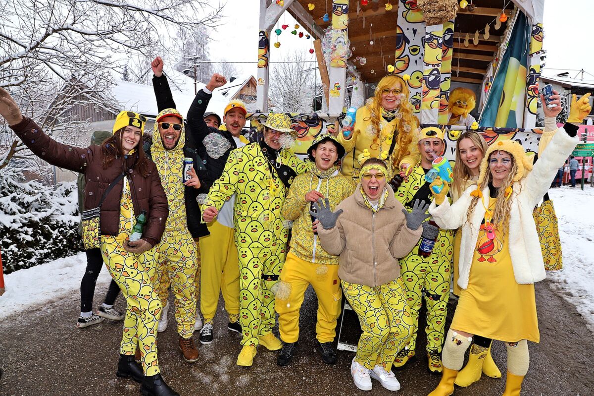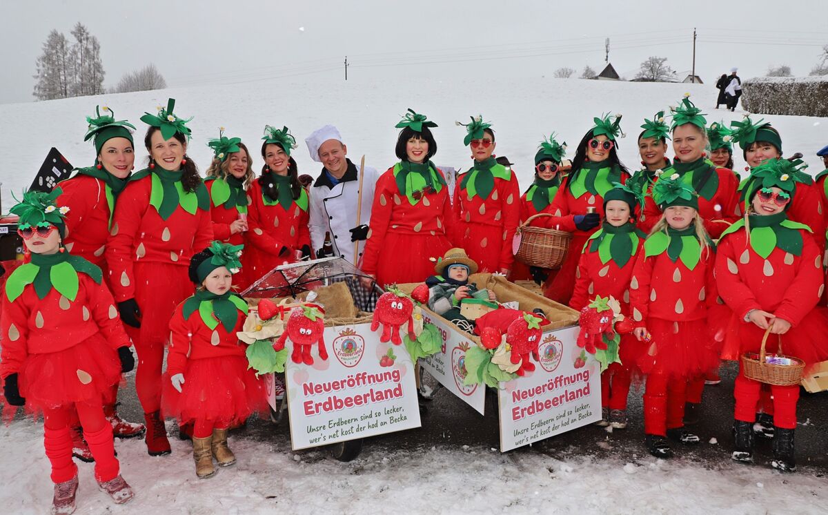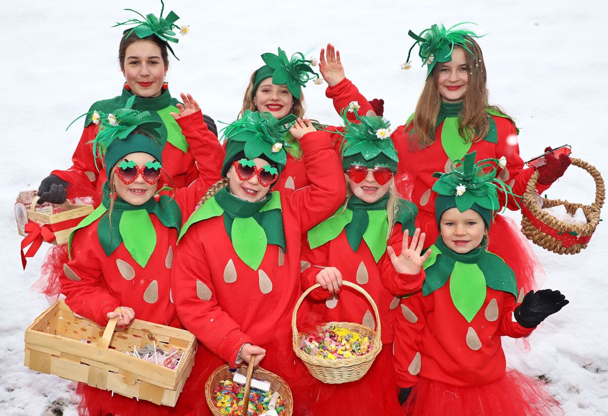 Angeführt von Musikkapelle, Gardemädchen und Prinzenpaar zogen fantasievolle Figuren durch den Ort – vom Vesperverein über Schlümpfe bis zu Erdbeerland, Pasta-Invasion und brasilianischen Kostümen. Der nächtliche Wintereinbruch tat der Feierlaune keinen Abbruch. Unter dem Motto „Spaß im Schnee“ wurde ausgelassen gelacht und gefeiert.
