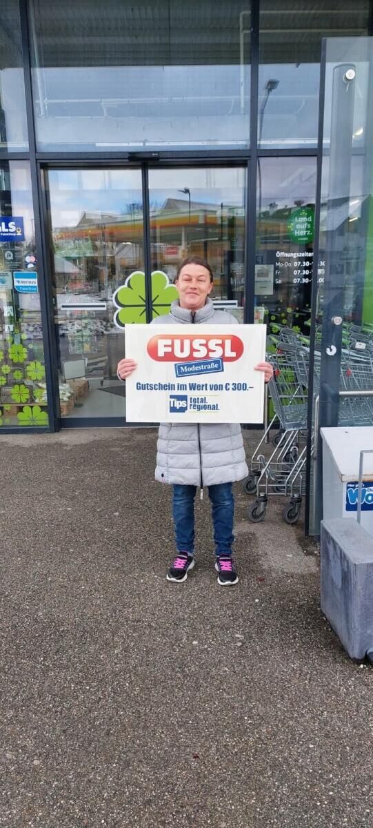 SCHARNSTEIN. Julia Schliesselberger durfte sich in dieser Woche über einen Fussl-Einkaufsgutschein im Wert von 300 Euro freuen. Die sympathische Scharnsteinerin ist eifrige Tips-Leserin und hatte sofort die richtige Antwort parat.