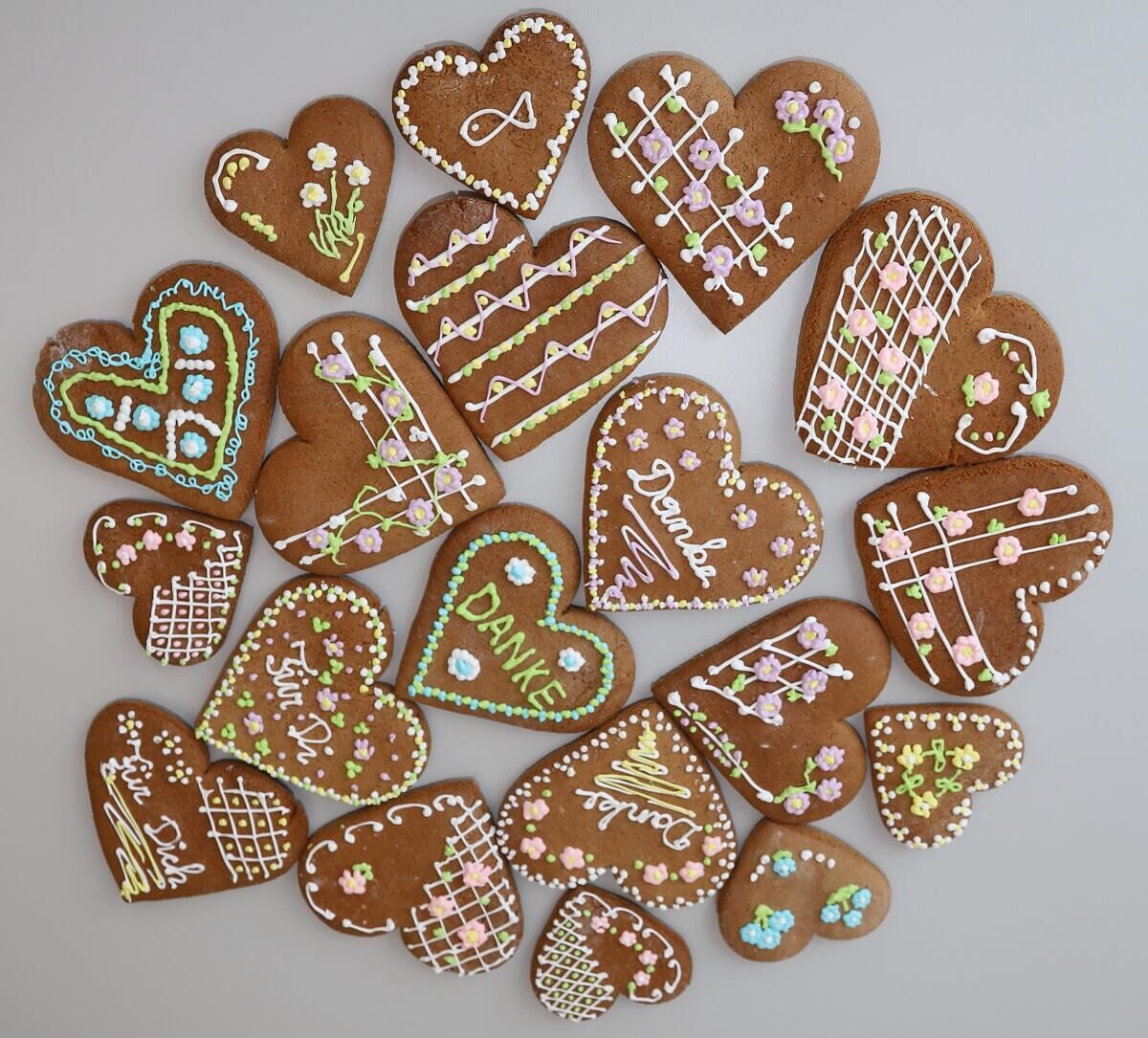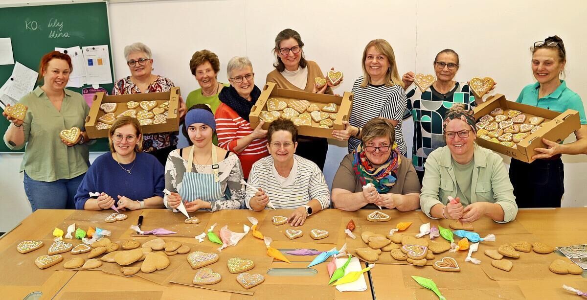 In den vergangenen Tagen investierten die Mitglieder viel Zeit in das Backen und Verzieren der Lebkuchenherzen. Die Herzen werden nach altem Rezept hergestellt und von Hand gestaltet.