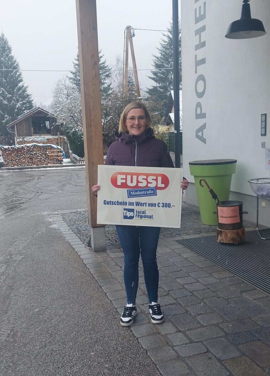 BAD GOISERN. Jasmin Wiesenauer durfte sich in dieser Woche über einen Fussl-Einkaufsgutschein im Wert von 300 Euro freuen. Die sympathische Bad Goiserern ist eifrige Tips-Leserin und hatte sofort die richtige Antwort parat.