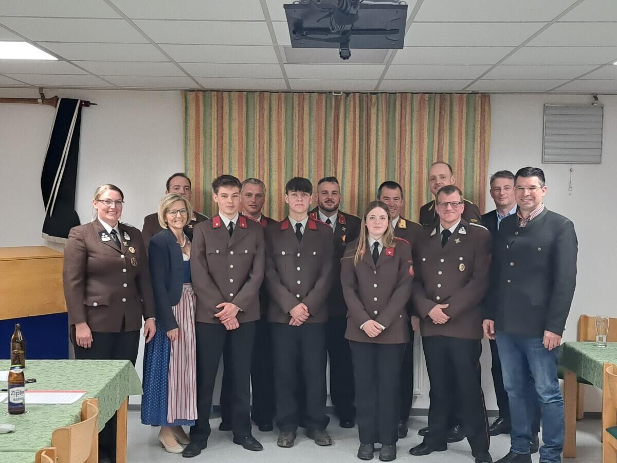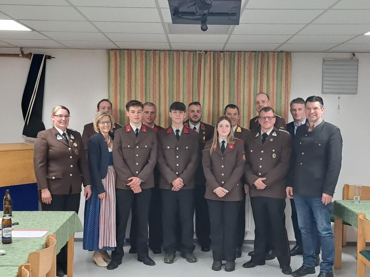 Ein Höhepunkt der Versammlung waren die Angelobungen und Beförderungen: Raphael Preimesberger und Igor Sivolija wurden angelobt, Katharina Loidl und Fabian Randacher zum Feuerwehrmann befördert, Peter Leirich zum Oberlöschmeister und Patrik Baumgartner zum Hauptlöschmeister.