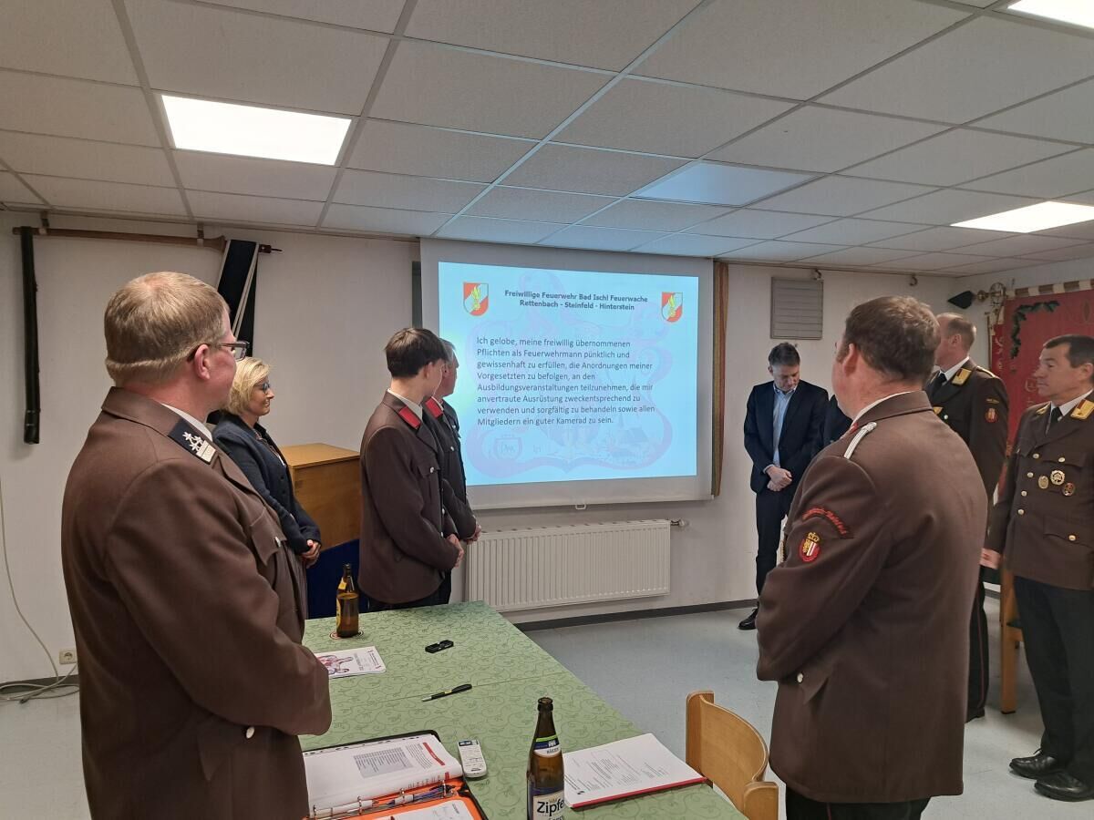 BAD ISCHL. Die Feuerwache Rettenbach – Steinfeld – Hinterstein legte bei ihrer Jahresvollversammlung eine umfassende Bilanz über das vergangene Jahr vor. Kommandant Michael Randacher berichtete von rund 9.000 geleisteten Arbeitsstunden und hob die zahlreichen Einsätze, Lehrgänge und ehrenamtlichen Tätigkeiten der Kameraden hervor.