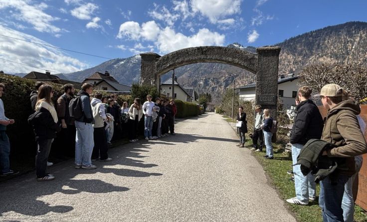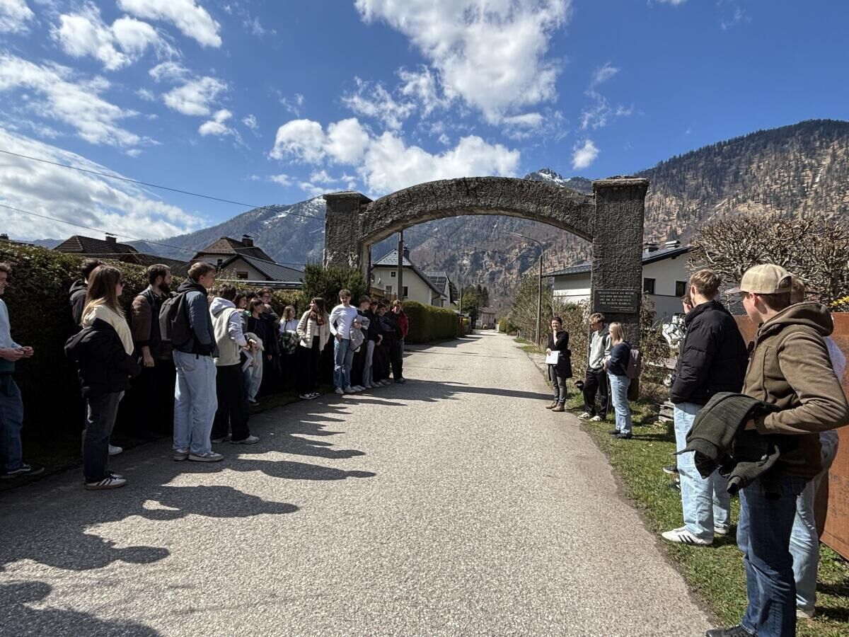 Im Anschluss führte die Exkursion über den sogenannten Löwengang zum Gelände des ehemaligen Konzentrationslagers Ebensee. Vor Ort wurden zentrale Schauplätze wie der Torbogen als ehemaliger Haupteingang sowie der Stollen Nummer fünf besichtigt, in dem sich heute eine Ausstellung befindet.