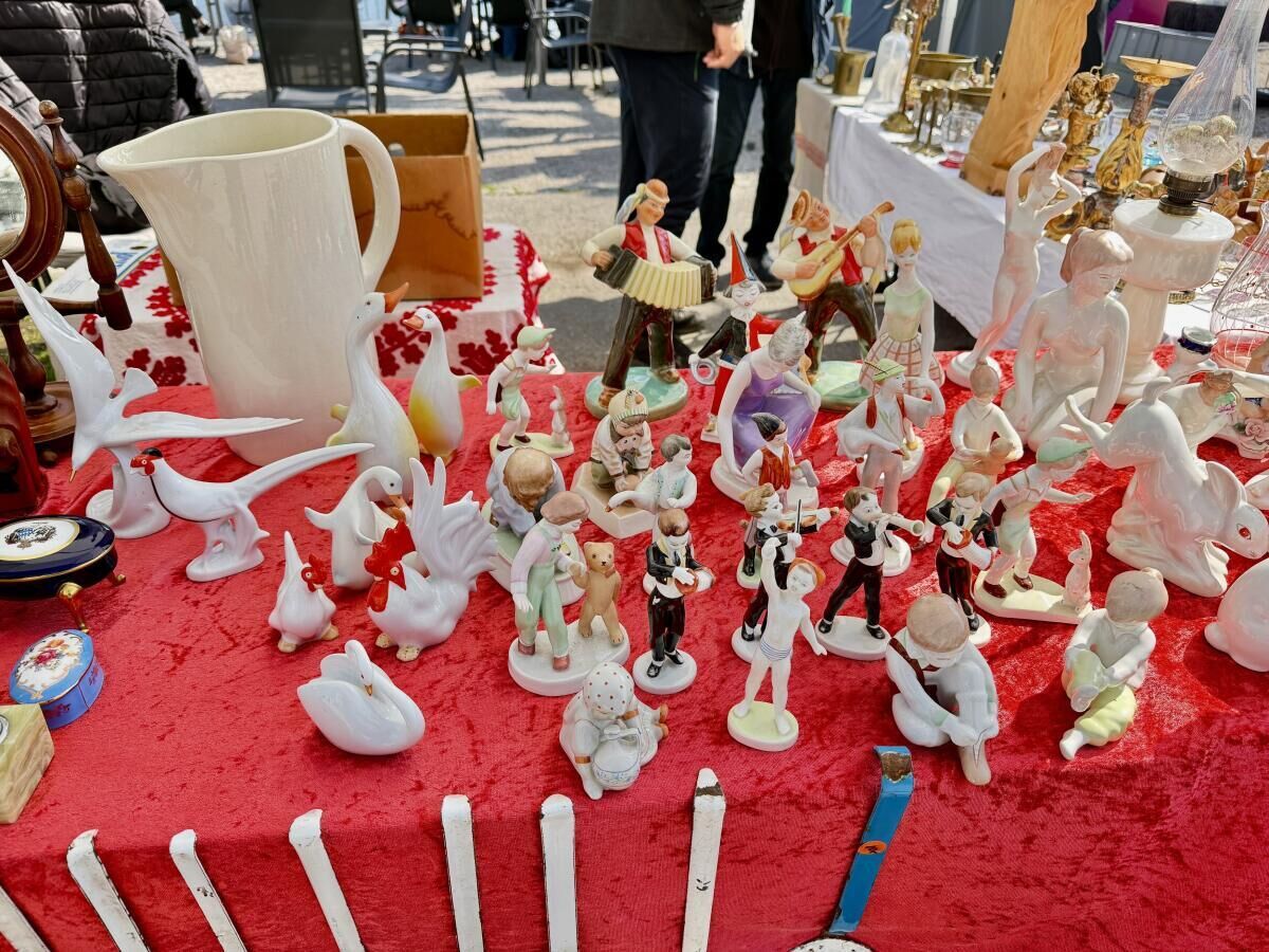 Am Samstag, 11. April, boten Händler entlang der Esplanade und am Rathausplatz ein breites Sortiment an. Angeboten wurden unter anderem Schuhe, Bekleidung, Keramik, Schmuck sowie zahlreiche Antiquitäten und Sammelstücke. Viele der ausgestellten Objekte wechselten den Besitzer, während andere lediglich betrachtet und bewertet wurden.