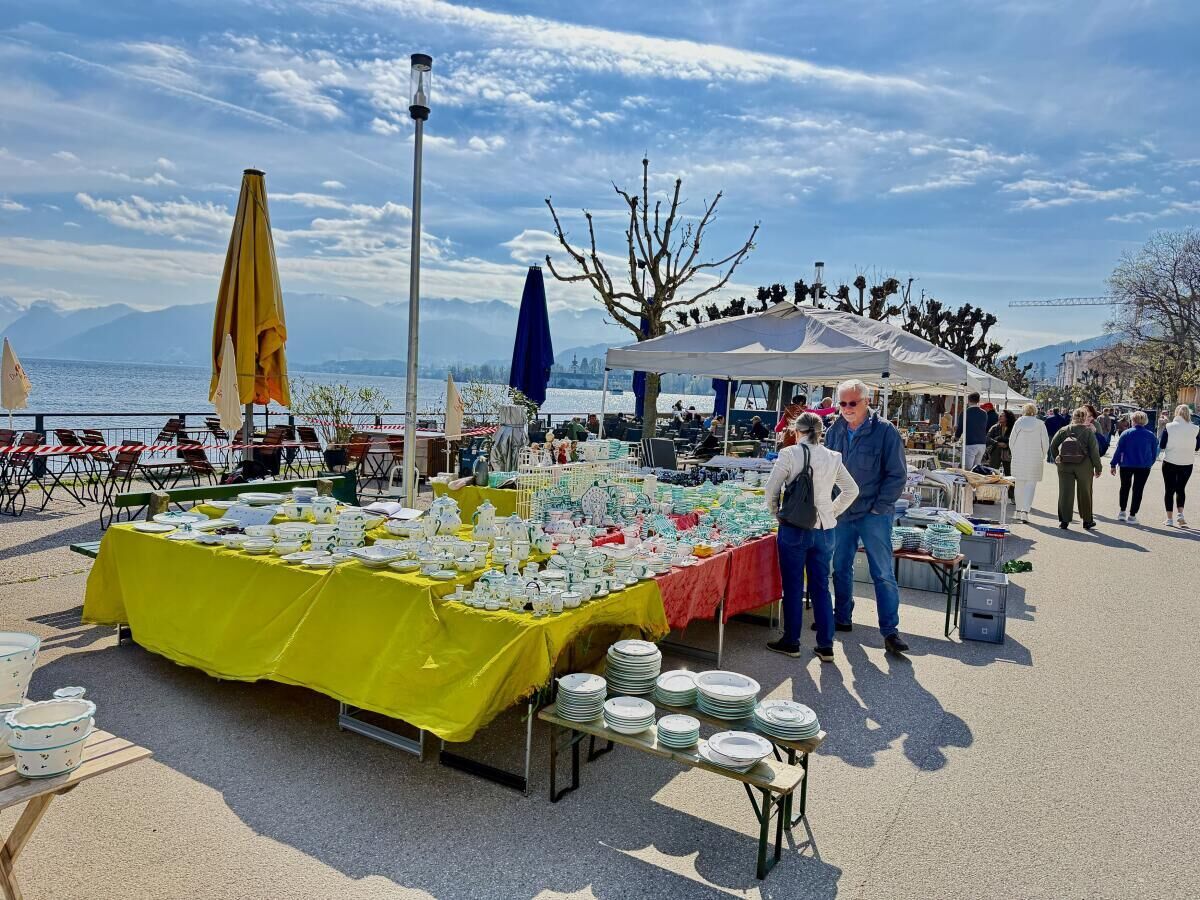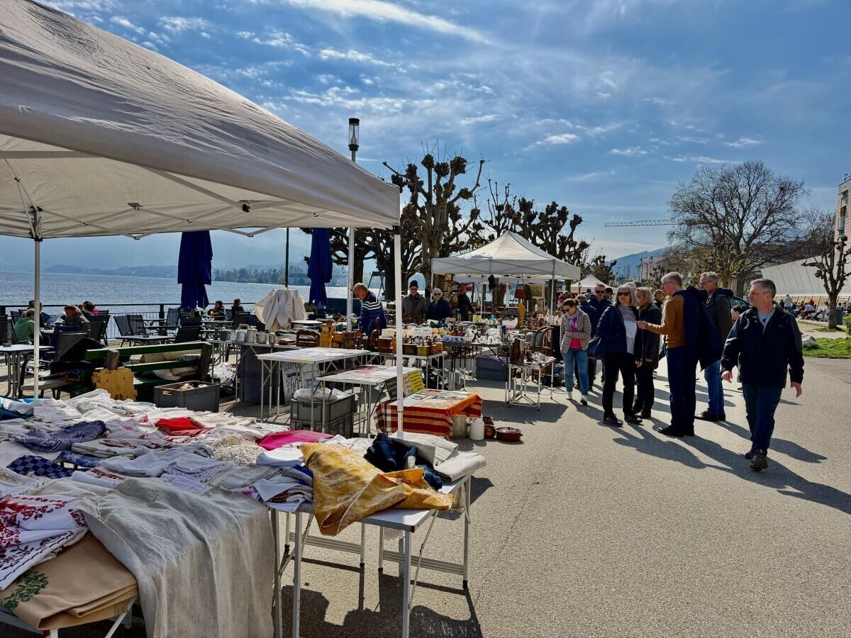 Im Mittelpunkt stand das breite Warenangebot des Marktes. Besucher nutzten die Gelegenheit zum Handeln und Feilschen, während Sammlerstücke und Alltagsgegenstände gleichermaßen Interesse fanden. Der Markt erstreckte sich vom Seebahnhof über die Schiffslände bis zum Rathausplatz und zog damit einen großen Besucherbereich an.