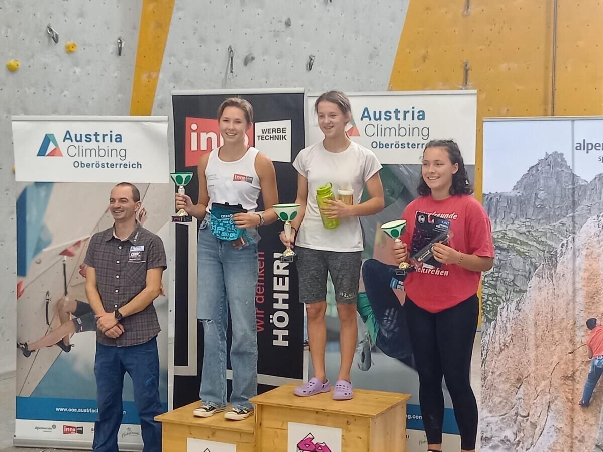 Bei den Damen war es ein aufregendes Kopf-an-Kopf-Rennen. Drei Kletterinnen waren mit 39 geschafften Boulder ex aequo, weshalb kurzfristig noch ein Finale am Kilterboard ausgerufen wurde. Der selbe Boulder musste einmal mit 10°, dann mit 15° und dann mit 20° Neigung geklettert werden, so lange bis die erste Teilnehmerin fällt. Dabei konnte Klettertrainerin Doris Wimmer das spannende Rennen für sich entscheiden und holte für Vorchdorf Platz Eins der Damenwertung.