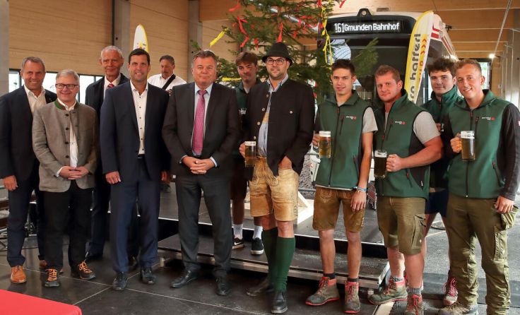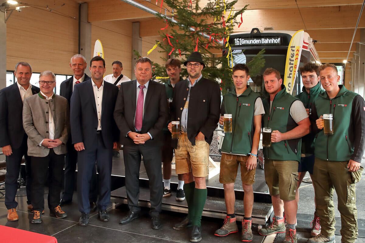 GMUNDEN. Gemeinsam mit Landesrat Günther Steinkellner, Bürgermeister Stefan Krapf und Günter Neumann wurde die Gleichenfeier und die Inbetriebnahme der Bahnhofshalle am Bahnhof Engelhof gefeiert. Der Bahnhof Engelhof, jetzt schon ein wichtiger Knotenpunkt im regionalen Nahverkehr, wird modernisiert und mit der Investition von Land und Bund um eine 3-gleisige Bahnhofshalle erweitert. Die P&R-Anlage, die ebenfalls in Planung ist, wird gemeinsam von Stadt, Land und Bund finanziert.