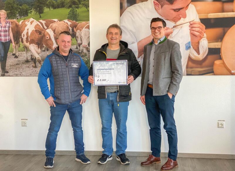 Durch den Verkauf der Lose bei der Tombola und der Inhalt der Spendenbox von der Weihnachtsfeier, organisiert durch den Betriebsrat der Gmundner Molkerei, konnte ein Betrag von 5.600 Euro gesammelt werden, den das Unternehmen auf 8.000 Euro aufgerundet hat.