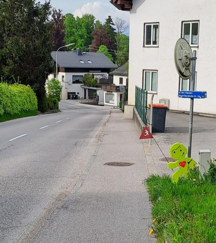 Auf Anregung des Elternvereins der Volksschule Altmünster hat die BH Gmunden in Zusammenarbeit mit der Marktgemeinde zügig für zusätzliche Sicherungsmaßnahmen gesorgt. Aus Sicht vieler betroffener Eltern reicht das aber nicht aus, weshalb der Elternverein nun zusätzliche StreetBuddys – etwa 80cm hohe, reflektierende Verkehrsmännchen – an besonders gefährlichen Stellen aufgestellt hat. Zusätzliche Maßnahmen seitens der Gemeinde und der BH wie etwa zusätzliche Tempoanzeigen oder temporäre Geschwindigkeitsbeschränkungen sind herzlichst willkommen.
