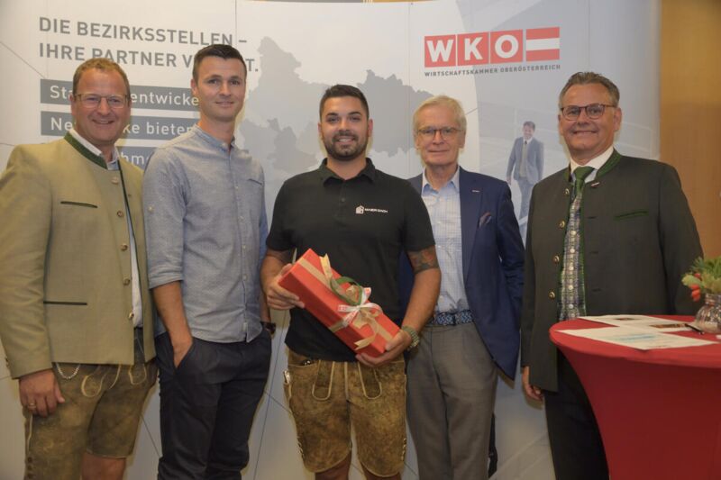 Geehrt wurde auch Dominik Maier (Maier Dach e.U.) aus Vorchdorf, der vor Kurzem den Jungunternehmerpreis der Jungen Wirtschaft OÖ in der Kategorie „Raketenstarter“ erhielt (zum Tips-Bericht). Mit seiner Maier Dach Lehrlingsschmiede hat er es sich zum Ziel gemacht, die besten Lehrlinge des Landes auszubilden.
