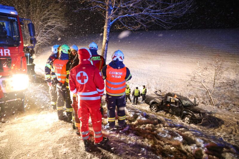 KALLHAM. Fünf Verletzte hat Samstagabend ein schwerer Verkehrsunfall auf der B137 Innviertler Straße bei Kallham gefordert. Ein Pick-up mit einer Familien an Board ist bei winterlichen Fahrverhältnissen gegen einen Baum geprallt.