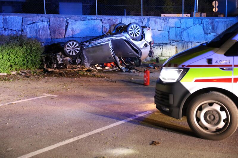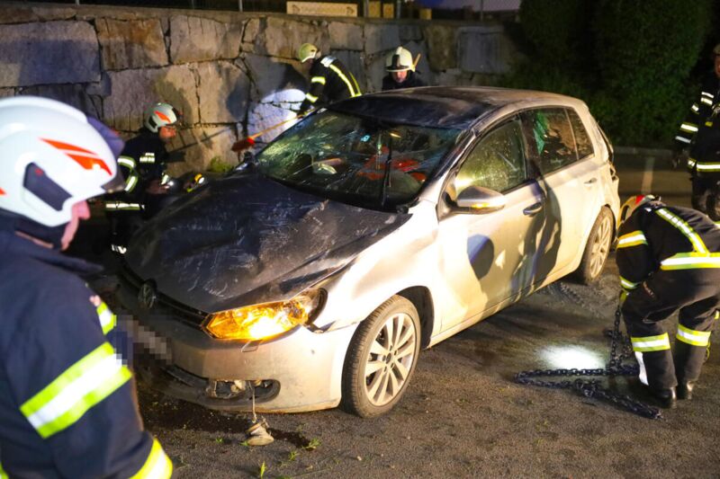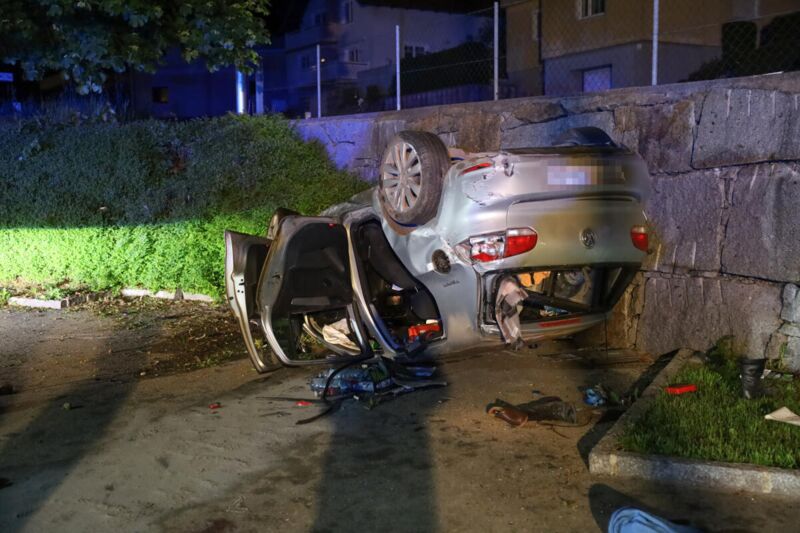 Ersten Angaben zufolge kam das Auto auf der Ernst-Dreefs-Straße kurz vor der Kreuzung mit der Grieskirchner Straße von der Fahrbahn ab. Das Fahrzeug überschlug sich auf einen Parkplatz und blieb seitlich gegen eine Steinmauer liegend stehen. Der Lenker blieb augenscheinlich unverletzt, eine weitere Person musste notärztlich erstversorgt und anschließend ins Krankenhaus gebracht werden.