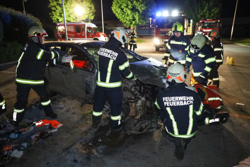 Der Beifahrer wurde aus dem Fahrzeug geschleudert und schwer verletzt. Er wurde nach der notärztlichen Erstversorgung in das Klinikum Wels eingeliefert. Der 22-jährige Fahrer wurde seinen Angaben nach nicht verletzt; er wurde jedoch zur Kontrolle ebenfalls in das Klinikum Wels gebracht. Ein Alkotest bei ihm ergab 1,86 Promille.