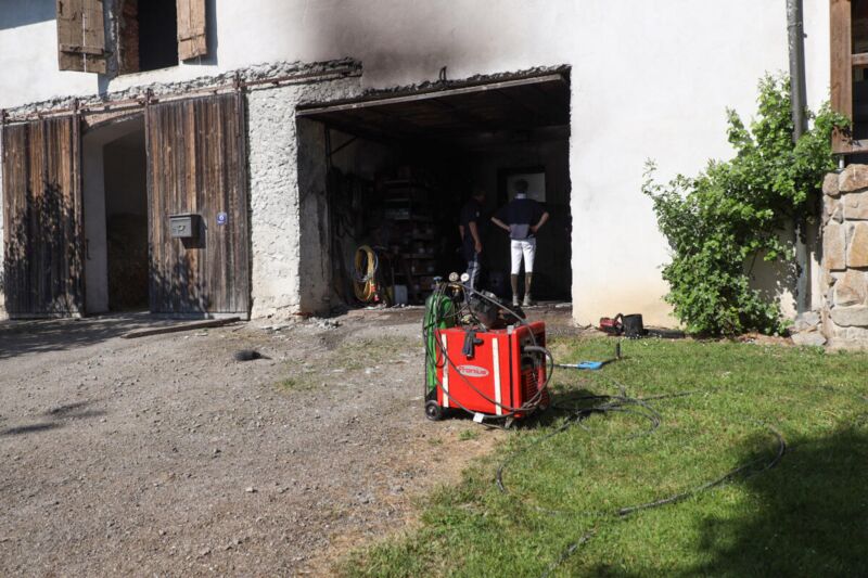 Garagenbrand in einem landwirtschaftlichen Gebäude