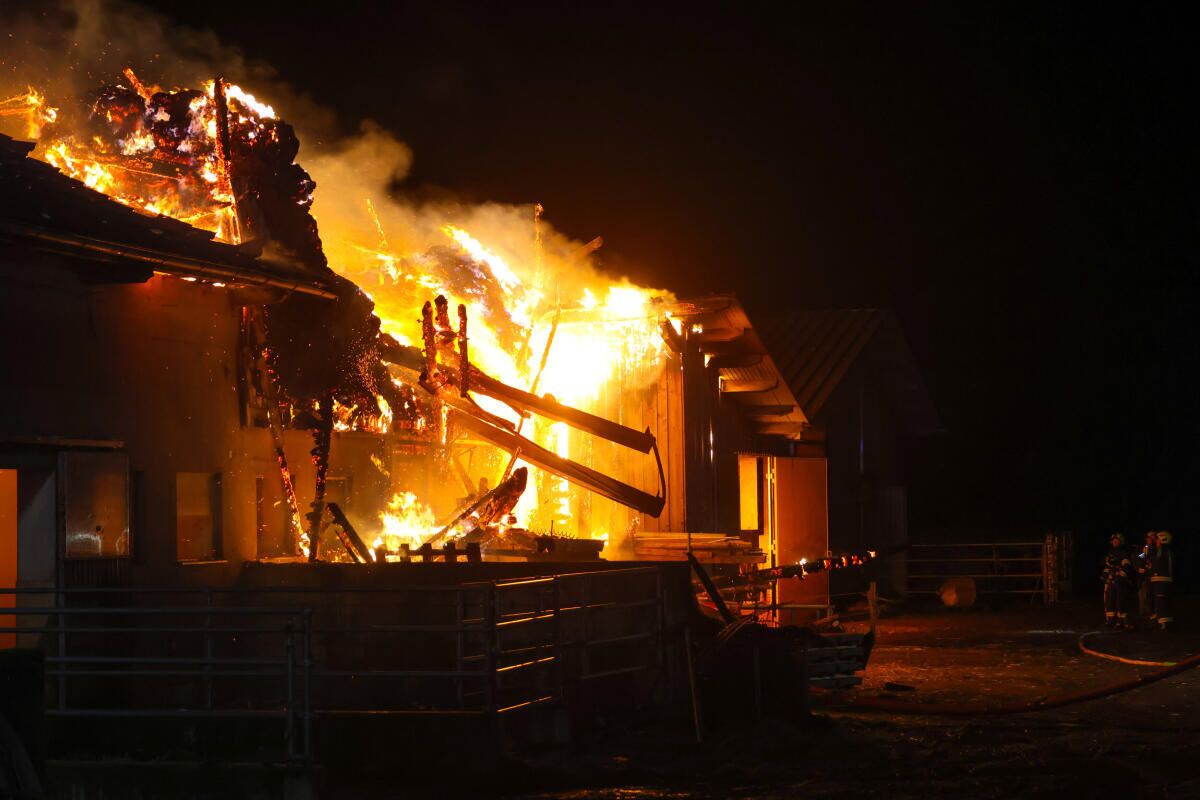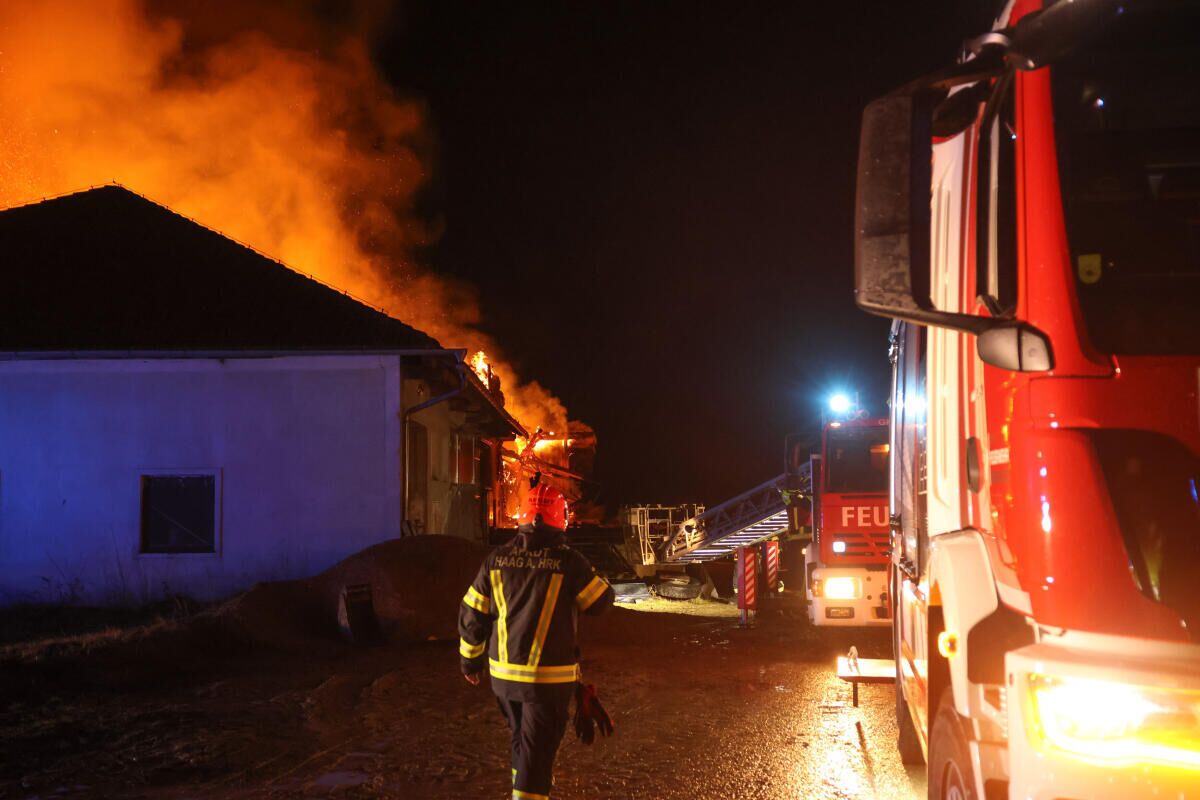 HAAG AM HAUSRUCK. In Haag am Hausruck ist in der Nacht auf Freitag auf einem Bauernhof ein Großbrand ausgebrochen. Die Feuerwehr rief Alarmstufe 3 aus, Einsatzkräfte von elf Feuerwehren standen im Einsatz.