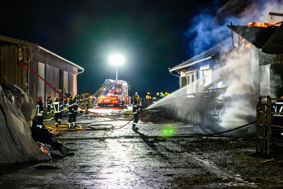 „Daraufhin wählte die Frau sofort den Feuerwehr-Notruf. Insgesamt waren 13 umliegende Feuerwehren mit etwa 185 Einsatzkräften im Löscheinsatz. Laut Angaben der 42-Jährigen befanden sich zum Brandzeitpunkt nur einige der rund 168 Rinder und Jungrinder im Stall, wodurch derzeit davon auszugehen ist, dass vermutlich rund 20 Jungrinder im Feuer verendeten“, berichtet die Polizei.