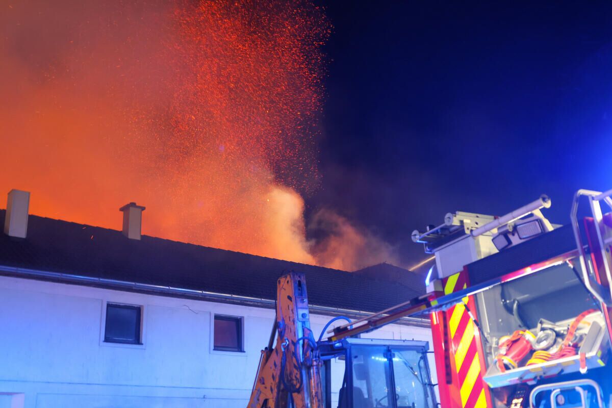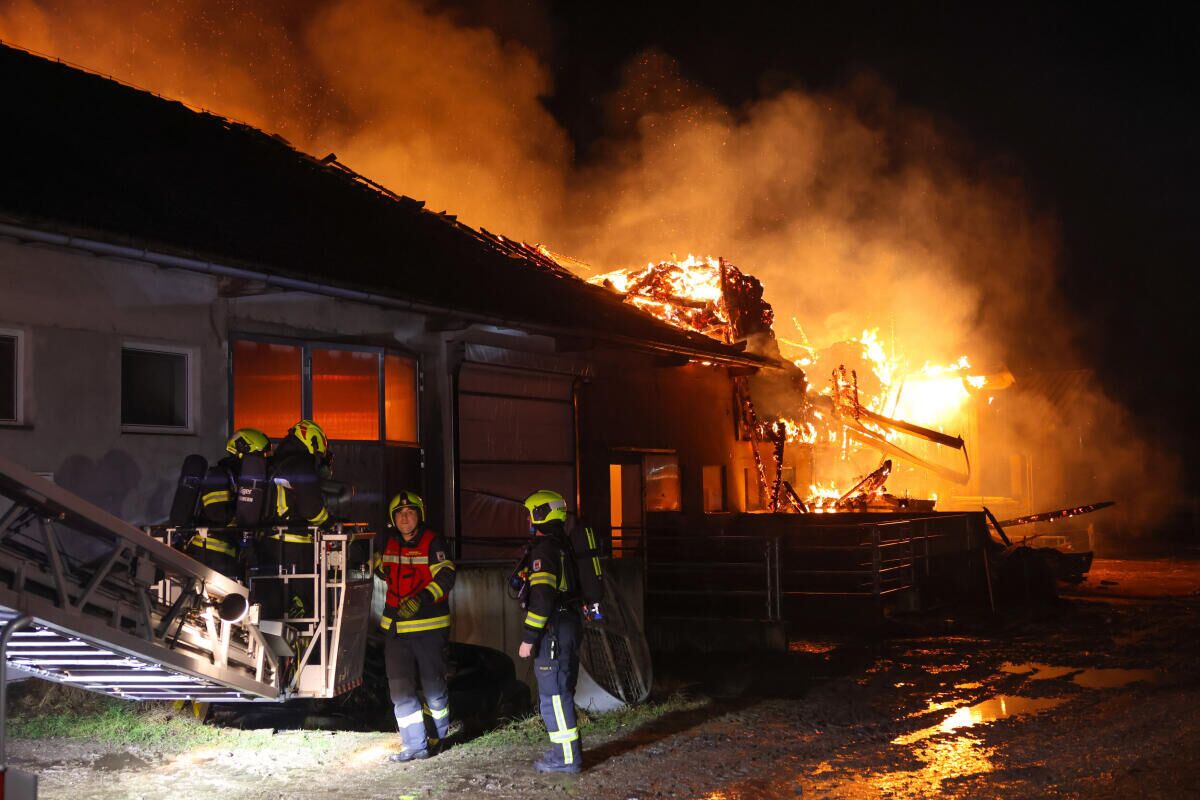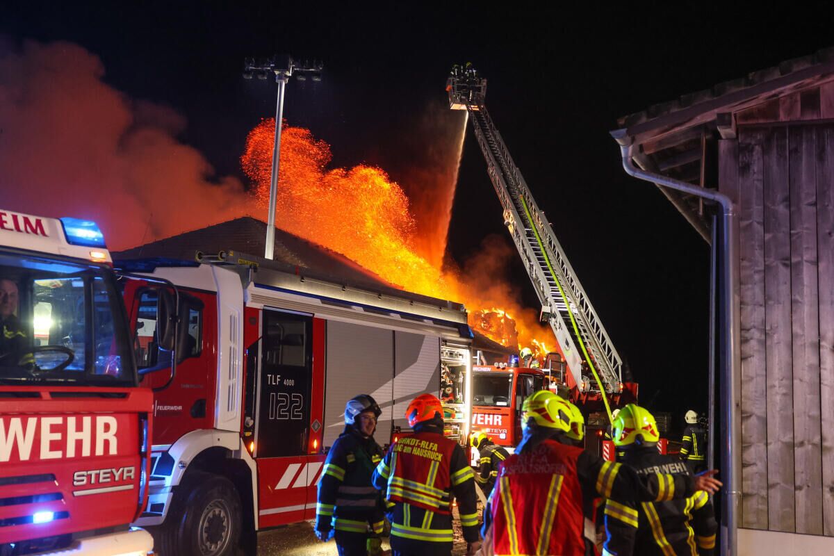 HAAG AM HAUSRUCK. (Update) In Haag am Hausruck ist in der Nacht auf Freitag auf einem Bauernhof ein Großbrand ausgebrochen. Die Feuerwehr rief Alarmstufe 3 aus, Einsatzkräfte von elf Feuerwehren standen im Einsatz.