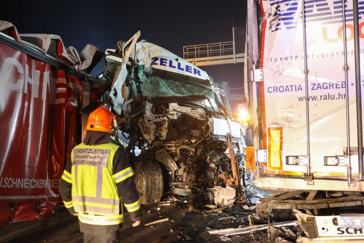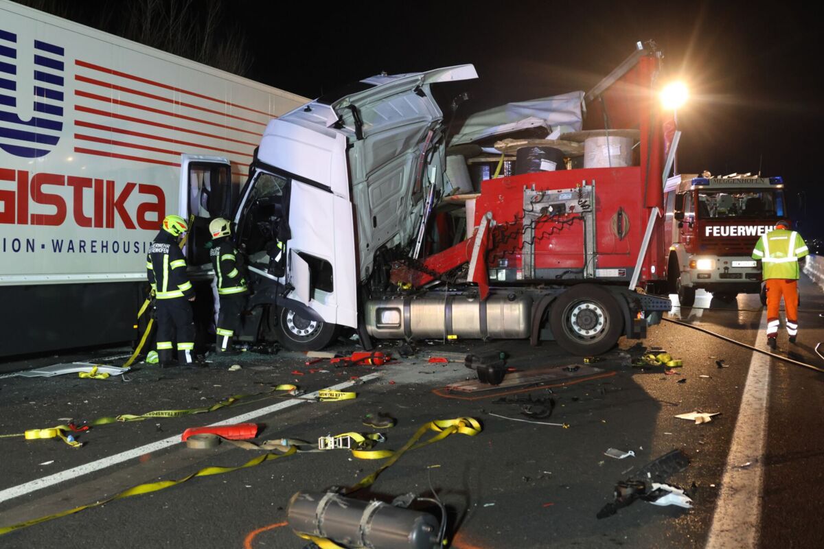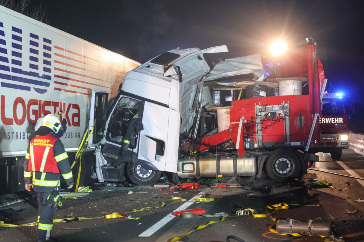KEMATEN AM INNBACH. Auf der A8 Innkreisautobahn ist am späten Dienstagabend bei Kematen am Innbach ein Lastwagen in einen schweren Unfall mit einem weiteren Sattelzug und einem Kleintransporter verwickelt worden, ein Mann wurde verletzt.