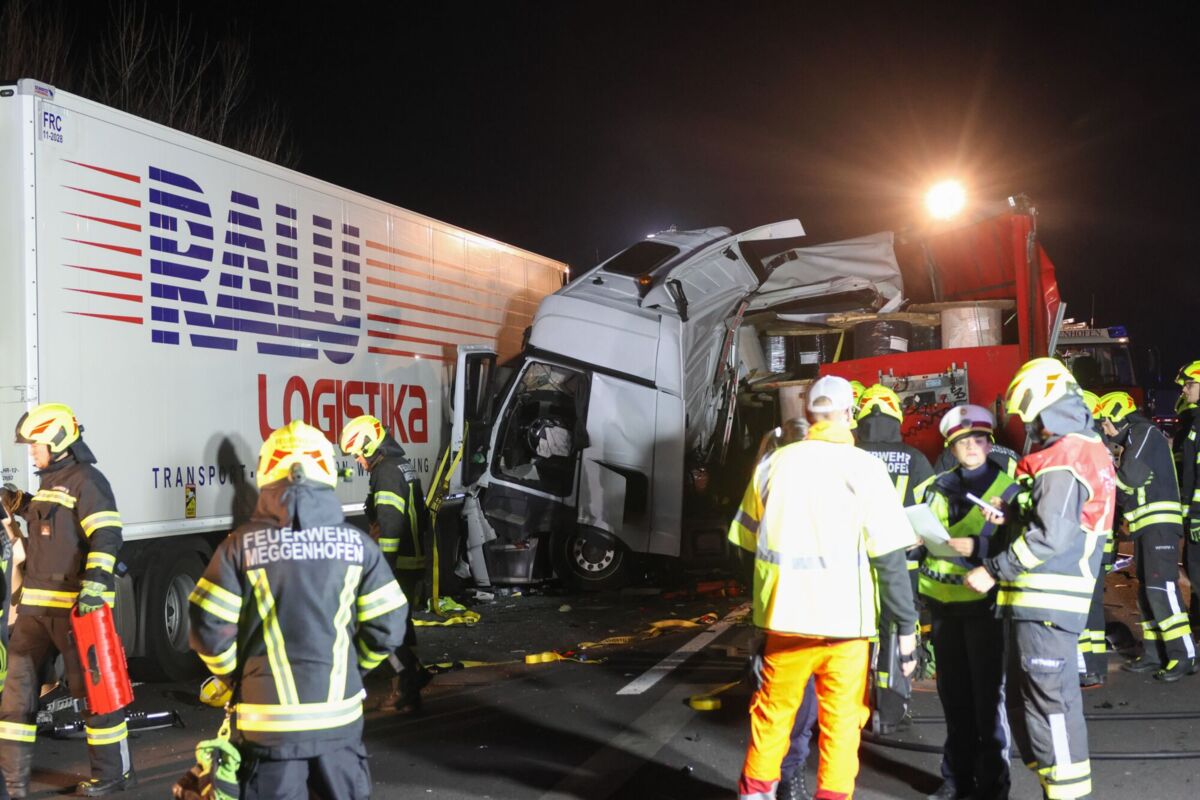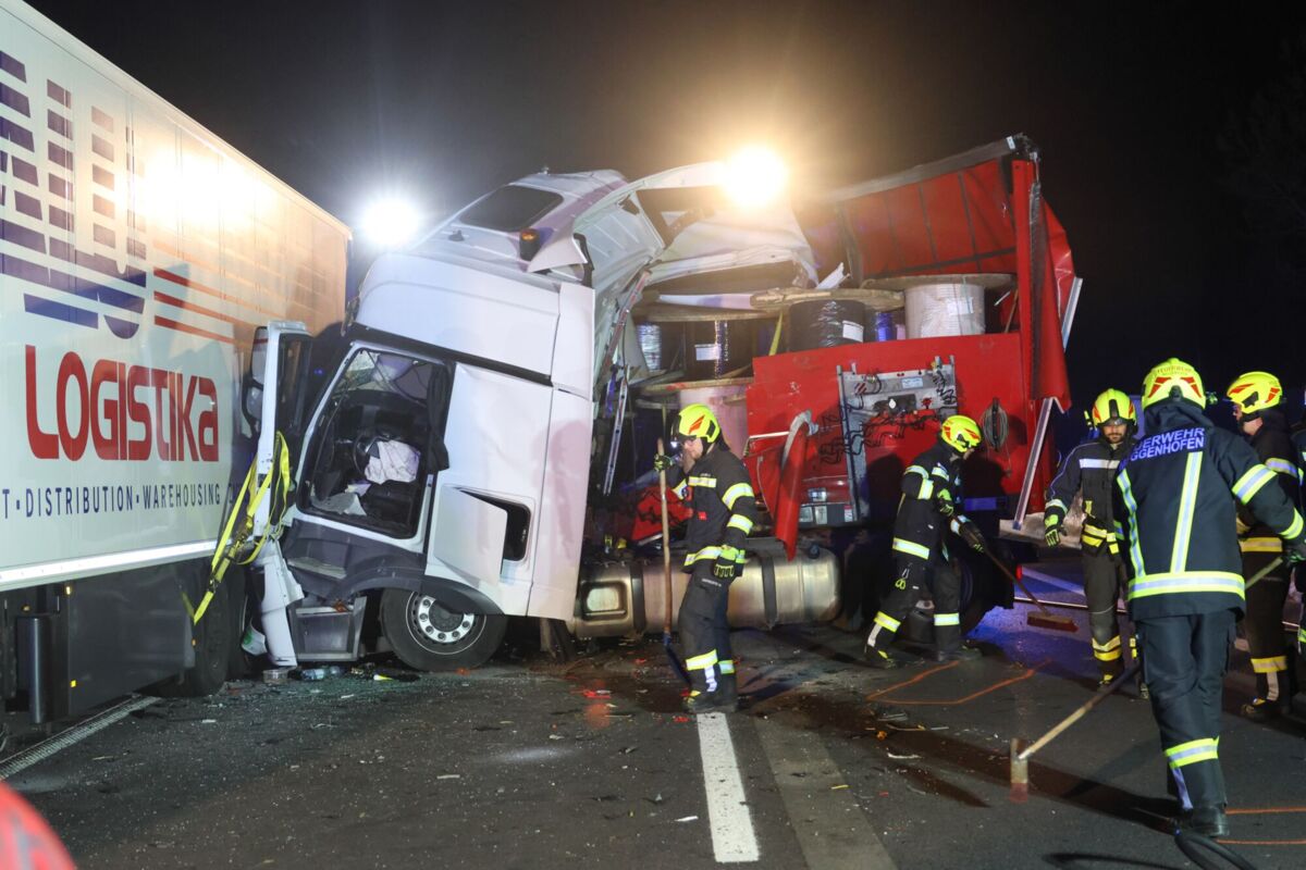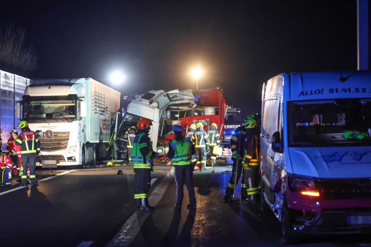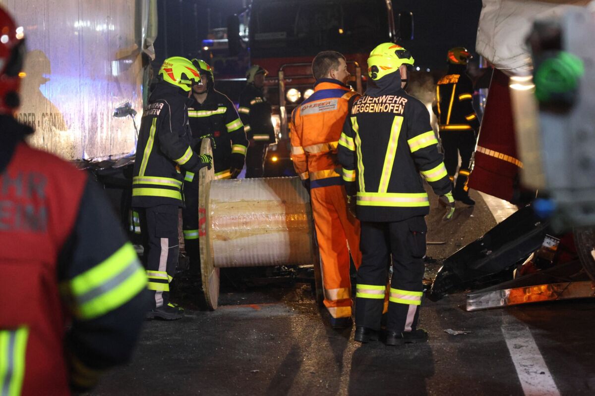 KEMATEN AM INNBACH. Auf der A8 Innkreisautobahn ist am späten Dienstagabend bei Kematen am Innbach ein Lastwagen in einen schweren Unfall mit einem weiteren Sattelzug und einem Kleintransporter verwickelt worden, ein Mann wurde verletzt.