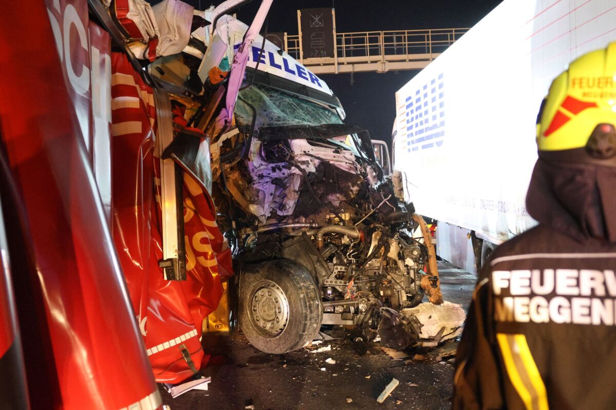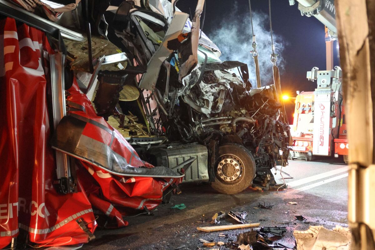 Der schwer beschädigte Lastwagen hatte Kabel geladen, der zweite Laster Bananen. Auch der beteiligte Kleintransporter wurde erheblich beschädigt.