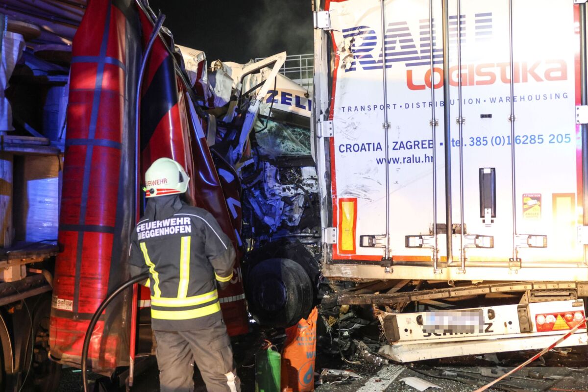 Der Unfall passierte auf der A8 Innkreisautobahn in Fahrtrichtung Knoten Voralpenkreuz im Gemeindegebiet von Kematen am Innbach. Der Lkw-Lenker - er war offenbar anfangs in der Fahrerkabine eingeschlossen - konnte zwischenzeitlich von Ersthelfern aus dem Wrack befreit werden. Er wurde vor Ort notärztlich versorgt.