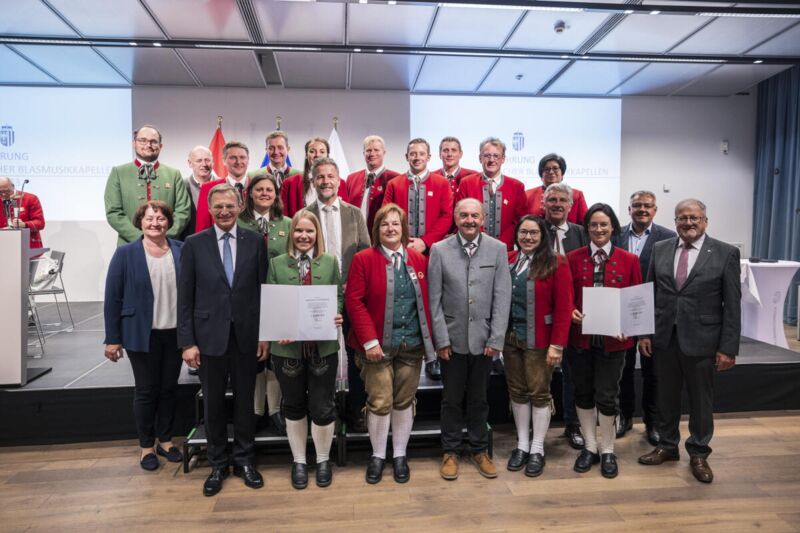 Bei einem Festakt im Linzer Schlossmuseum ehrte Landeshauptmann Thomas Stelzer 60 Blasmusikkapellen aus ganz Oberösterreich für ihre Leistungen bei Konzert- und Marschwertungen. Diese Würdigung erhalten jene Vereine, die seit der letzten Ehrung mindestens an fünf Konzertwertungen und an drei Marschwertungen teilgenommen haben. Die allermeisten Kapellen waren aufgrund ihres Engagements schon zum wiederholten Mal zu dieser Ehrungsfeier geladen.