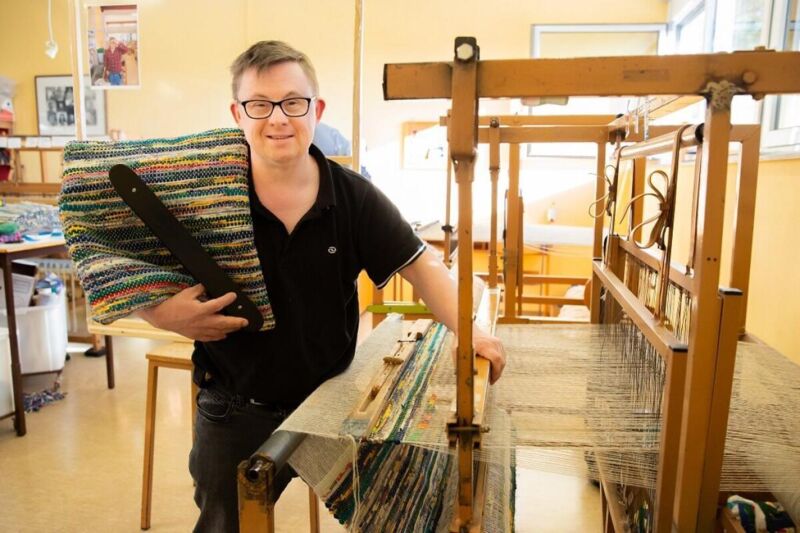 Auch in der Werkstätte in St. Pius ist der Webstuhl sein liebster Arbeitskollege und Stefan Hofer betont: „Ich möchte nirgends anders arbeiten. Ich freue mich jeden Tag auf die Arbeit.“ Die monotone Tätigkeit am Webstuhl gefällt ihm.