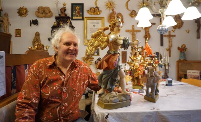 AISTERSHEIM. Ein Heiliger Florian hier, ein Engerl da und ein „Herrgott“ dort. Betritt man das Haus von Johannes Schildberger in der Strizmannhöhe in Aistersheim, ist seine Leidenschaft unverkennbar. Der 60-Jährige hat sich bereits als junger Bub in das Schnitzerhandwerk verliebt.