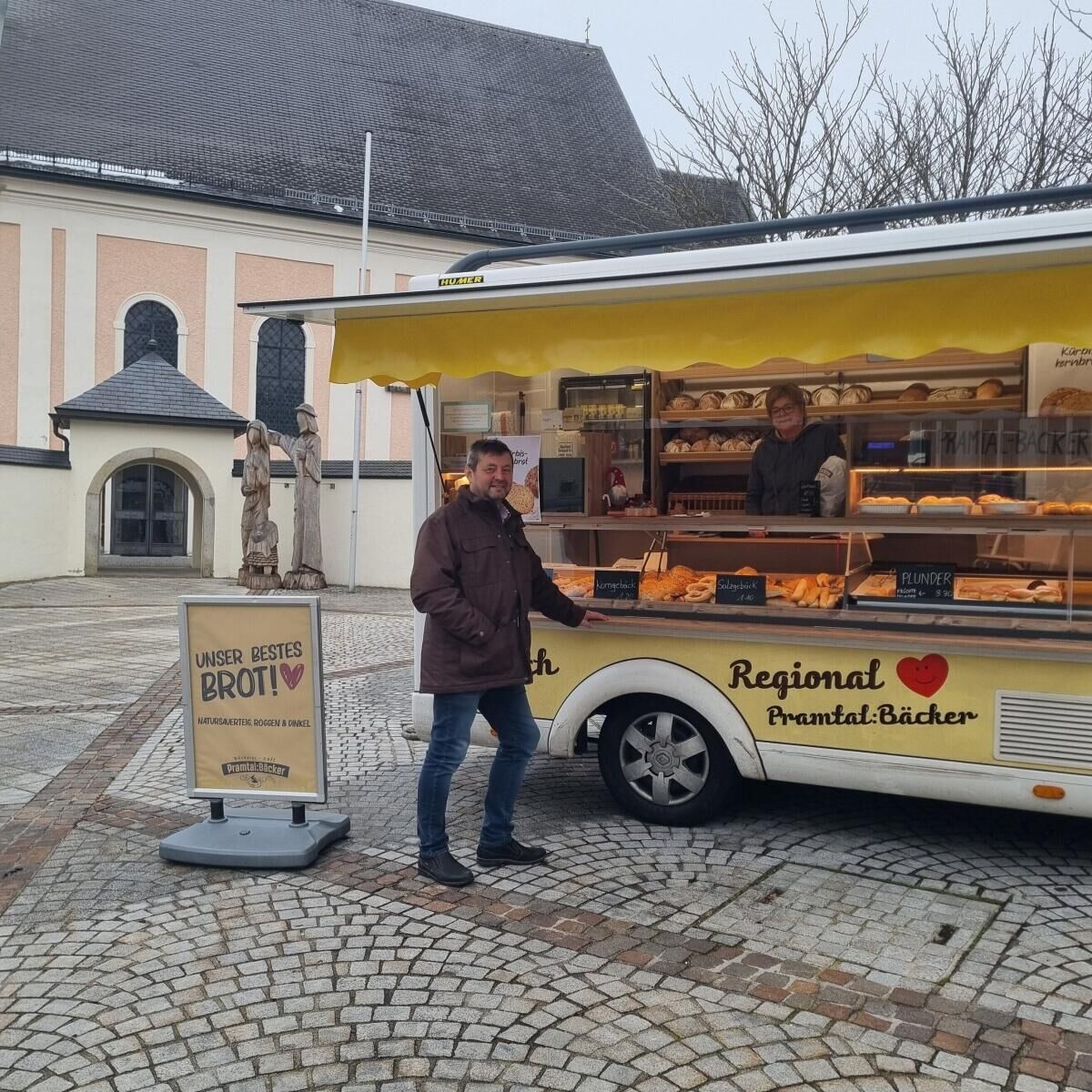 Wer zum Fleisch auch das Brot im Ort kaufen möchte, der kann das beim Verkaufswagen vom Pramtal:Bäcker aus Zell an der Pram tun. Jeden Dienstag von 7 bis 14 Uhr macht dieser am Dorfplatz Station. Im Sortiment hat der Bäcker neben Brot und Gebäck auch Mehlspeisen. „Backqualität mit Hand und Herz“ wird geboten, heißt es vom Pramtal:Bäcker
