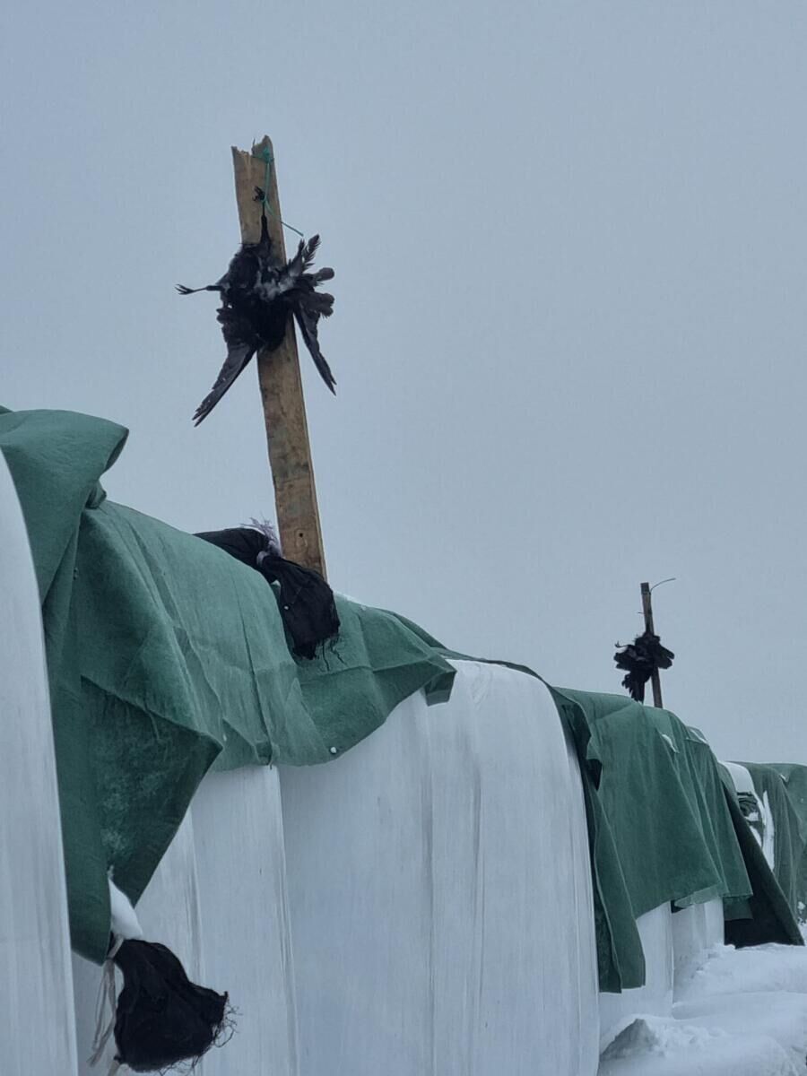 „Das Thema tote Krähen zur Vergrämung der lebenden Artgenossen wird jedes Jahr wieder aktuell. Diese Praxis wird seit mehreren Jahrzehnten von Landwirten praktiziert, nicht nur bei Siloballen, auch bei diversen Obstbäumen wie Kirschen“, erklärt Bezirksjägermeister Adolf Haberfellner aus Grieskirchen: „Bei Siloballen fallen ganze Schwärme von Krähen und Dohlen über die im Freien gelagerten Ballen her und verursachen durch die Beschädigung der Folie enorme Qualitätsverluste beim verpackten Futter für die Rinderhaltung.“ Von der Jägerschaft werden nach Haberfellners Wissensstand keine erlegten Krähen an Landwirte abgegeben.
