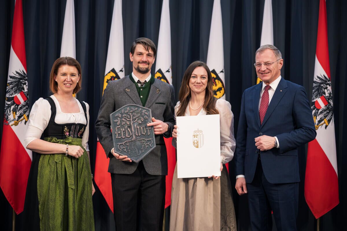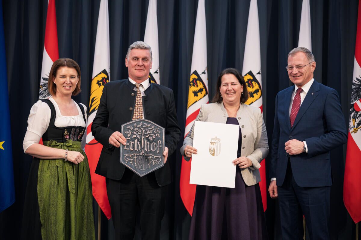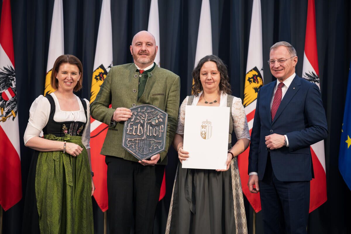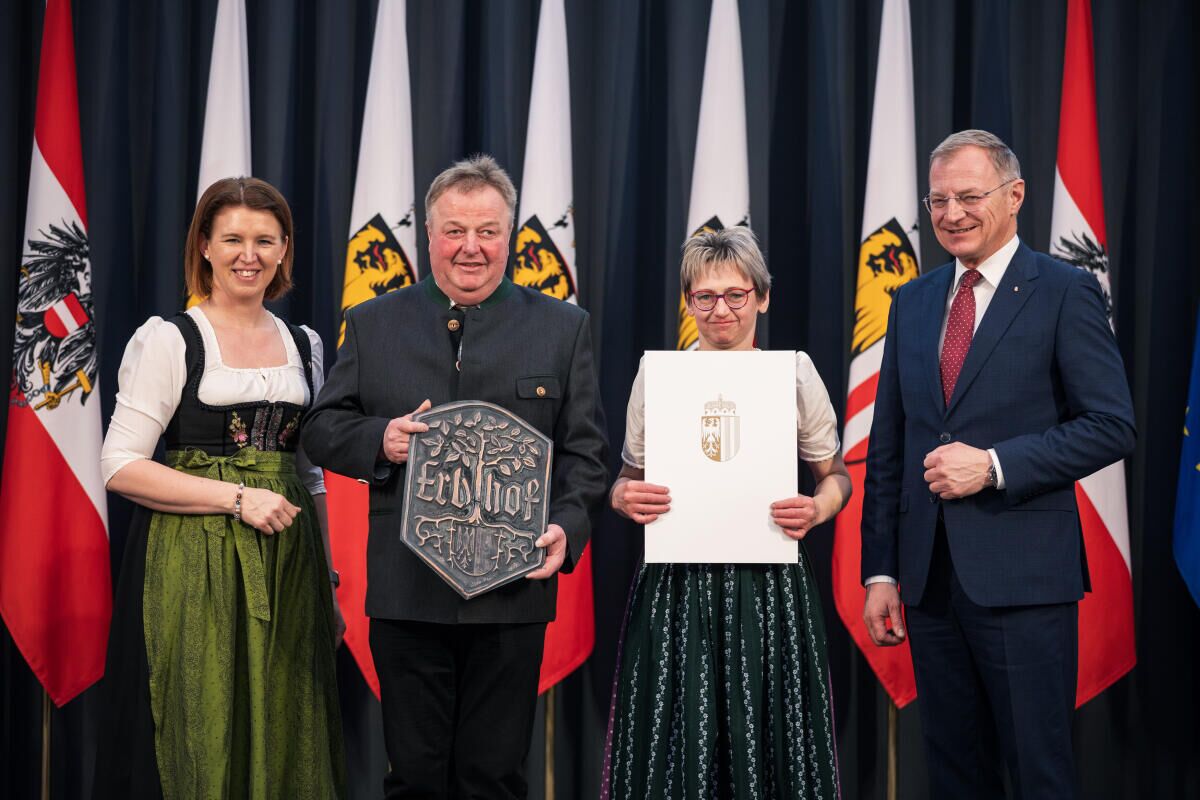 Die Landesregierung würdigt mit dem Ehrentitel „Erbhof“ jene landwirtschaftlichen Betriebe, die seit mindestens 200 Jahren von derselben Familie bewirtschaftet und an die nächste Generation weitervererbt werden. „Erbhöfe zeigen, wie eng Tradition, Nachhaltigkeit und wirtschaftliche Stärke verbunden sind. Sie leben von und mit der Natur. Dabei bewahren sie Kultur und Wissen, sichern hochwertige Lebensmittel und stärken regionale Kreisläufe“, sagt Michaela Langer-Weninger.