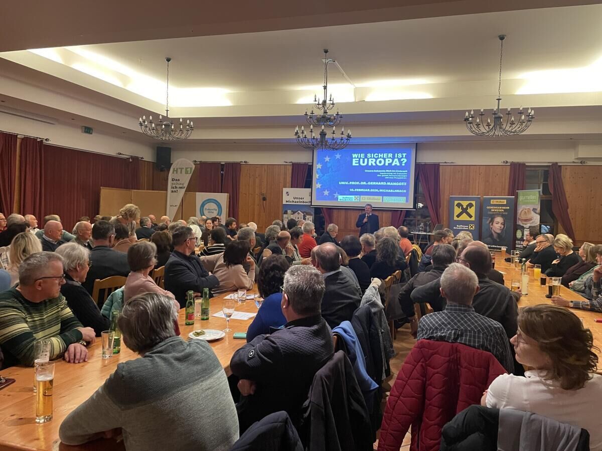 MICHAELNBACH. Die Informationsveranstaltung „Wie sicher ist Europa?“ mit dem renommierten Politikwissenschaftler Gerhard Mangott im Gasthaus Schörgendorfer in Michaelnbach stieß auf großes Interesse.