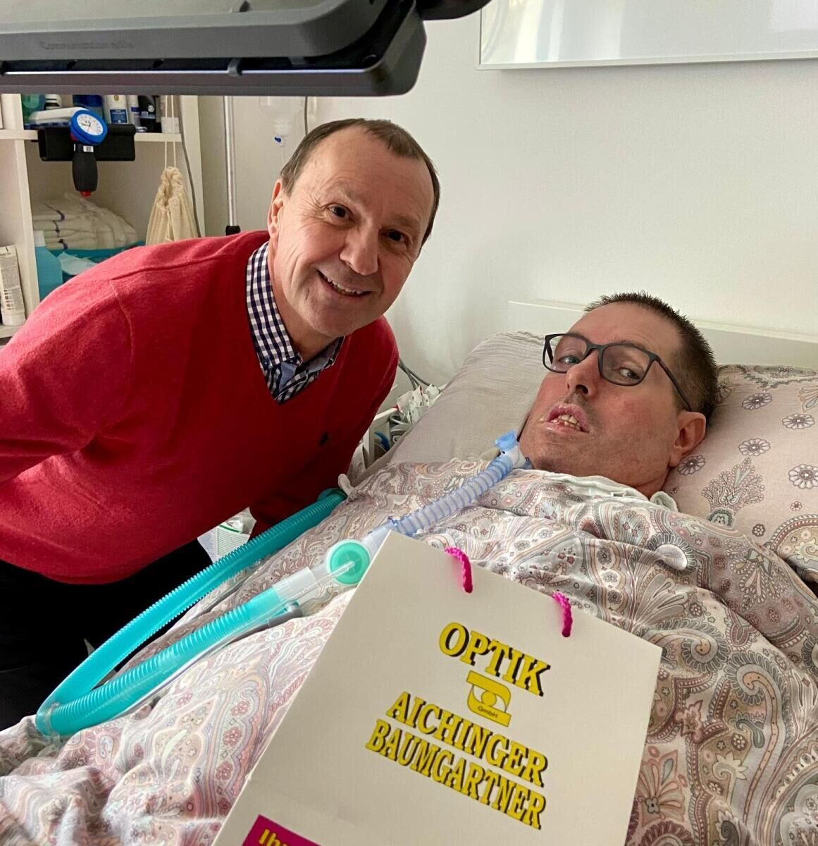 Baumgartner stellte ihm eine speziell angepasste Computerbrille mit besonderem Blaulichtfilter zur Verfügung. Sie entlastet die Augen spürbar und erleichtert die tägliche Kommunikation am Computer. Gerade bei der Nutzung der Augensteuerung ist eine optimale Sicht entscheidend, um Texte zu verfassen und mit anderen in Kontakt zu bleiben.
