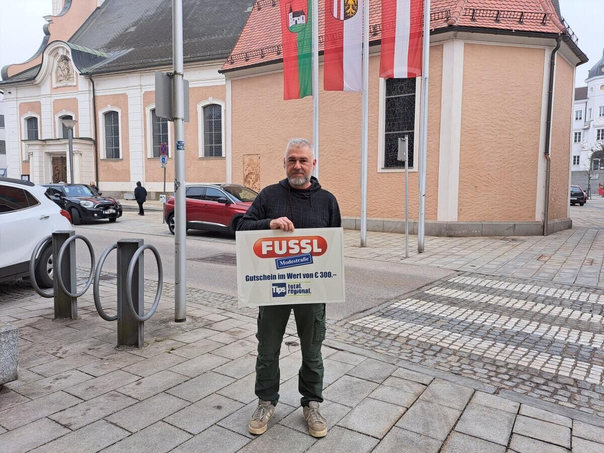 Der Fröling-Monteur Werner Mayr aus Michaelnbach kam gerade aus einem Grieskirchner Juweliergeschäft, als er vor der Kirche dem Tips-Glücksengerl begegnete. Auf die Frage nach seiner Lieblingszeitung antwortete er korrekt „Tips“ und durfte sich somit über einen 300-Euro-Gutschein der Fussl-Modestraße vom Tips-Glücksengerl freuen. Die Tips lese er gern, um immer über die Region informiert zu sein. Mit seinem Gewinn wird er mit seiner Familie einkaufen gehen.