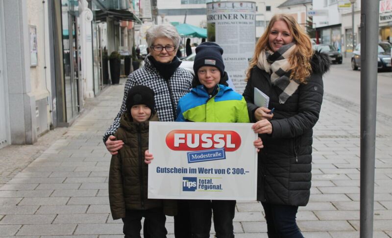 Das Tips-Glücksengerl war wieder in der Bezirkshauptstadt Grieskirchen unterwegs und überraschte eine Aistersheimerin und ihre beiden Enkerl – den elfjährigen Paul und den achtjährigen David. Auf die Frage, ob man schnell eine Frage stellen dürfte, antwortete Paul gleich mit „Ja“ und so wurde der Oma gleich die nächste Frage gestellt: „Was ist Ihre Lieblingszeitung?“ Natürlich wusste Pauline Wilflingseder die richtige Antwort, „Tips!“, und durfte sich über einen 300-Euro-Fussl-Gutschein freuen. Sie war mit ihren beiden Enkerl noch für verschiedene Besorgungen in der Stadt unterwegs. Die Tips liest die Aistersheimerin gerne, weil viel über die Geschehnisse aus der Region berichtet wird. Die Tips-Glücksengerl sind noch bis Juli mehrmals in allen Bezirken Oberösterreichs und Amstetten unterwegs und befragen Passanten nach ihrer Lieblingszeitung. Für die richtige Antwort werden Warengutscheine der Fussl Modestraße im Gesamtwert von 32.700 Euro verschenkt.