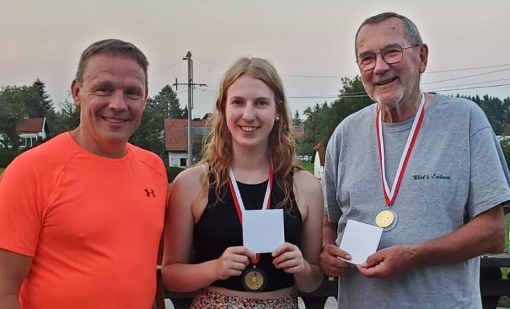 Acht Paare nahmen an dem Turnier bei großer Hitze teil. Auf Platz zwei und drei landeten die Paarungen Rosemarie Knoll und Franz Dallinger und Alexandra und Tobias Lanz.