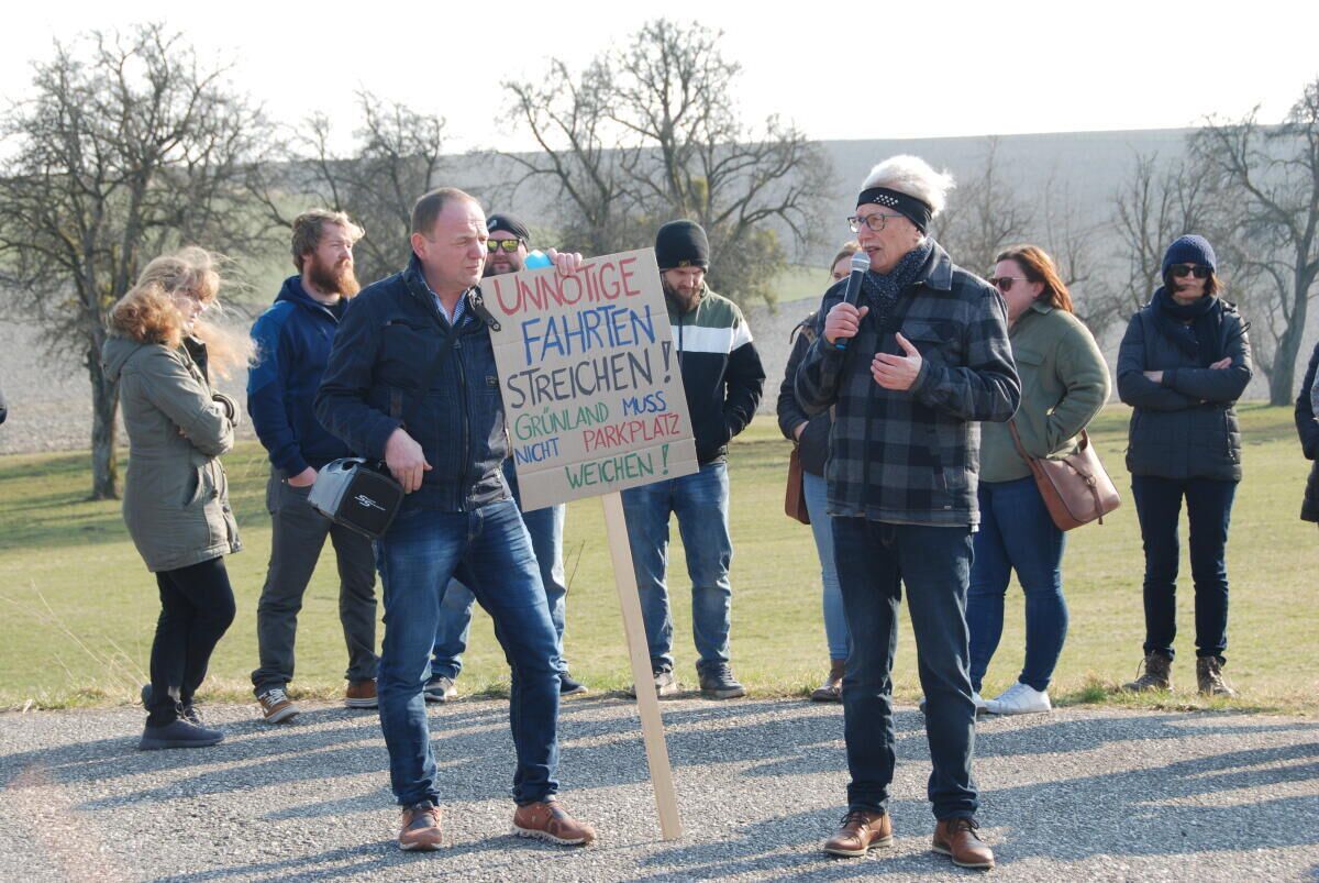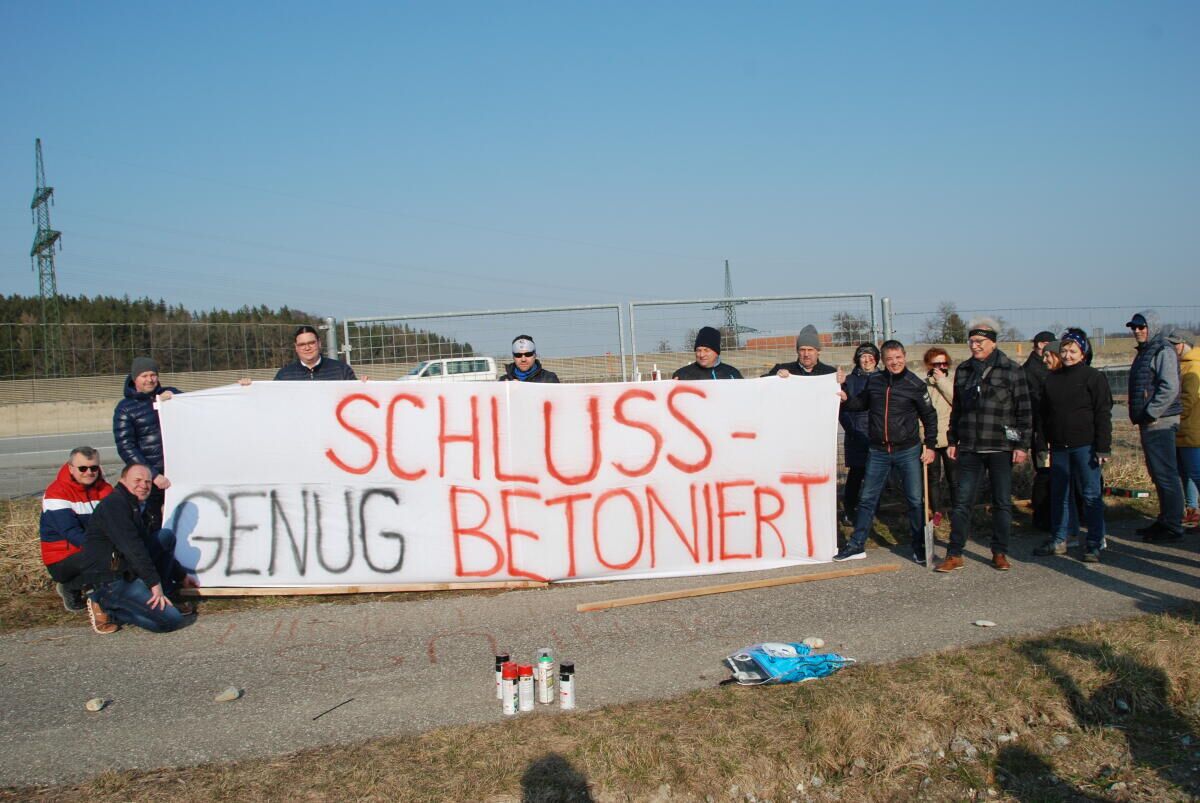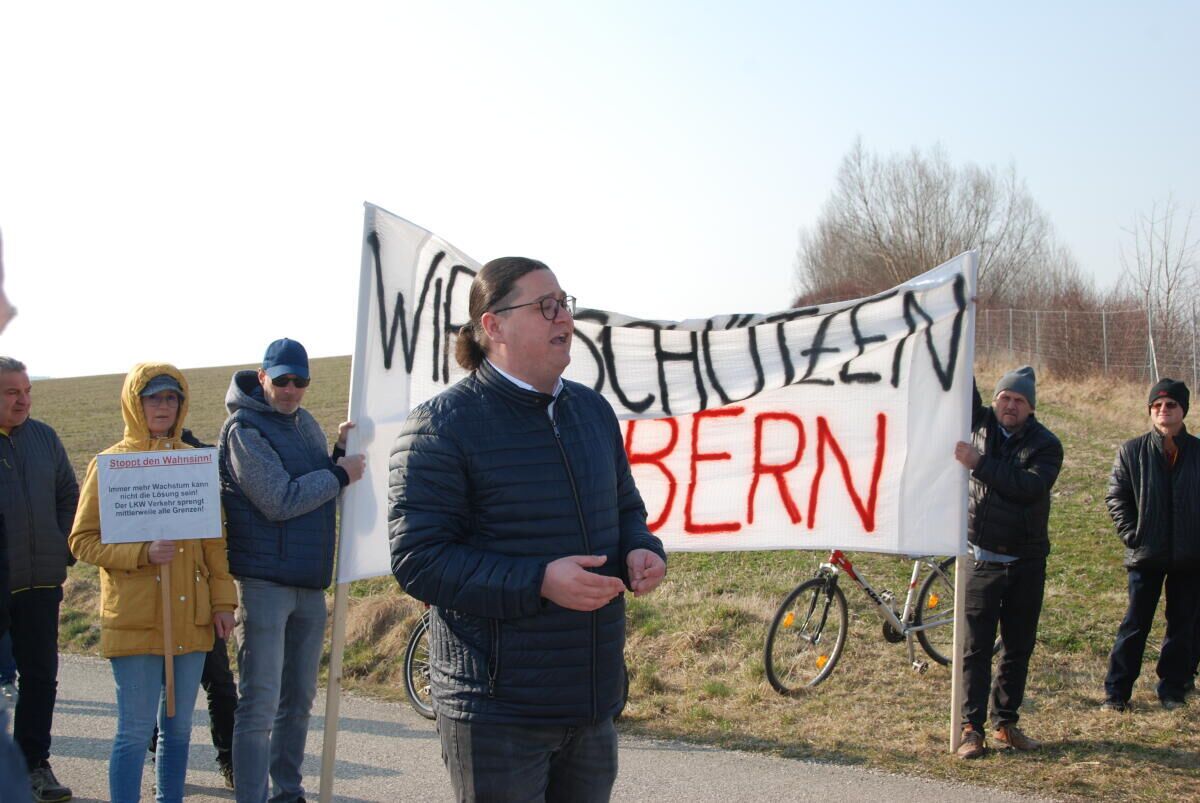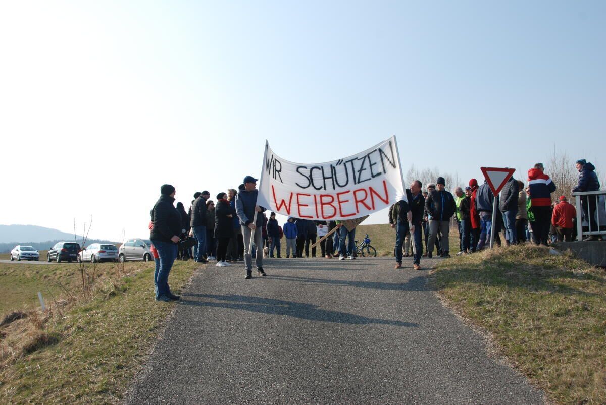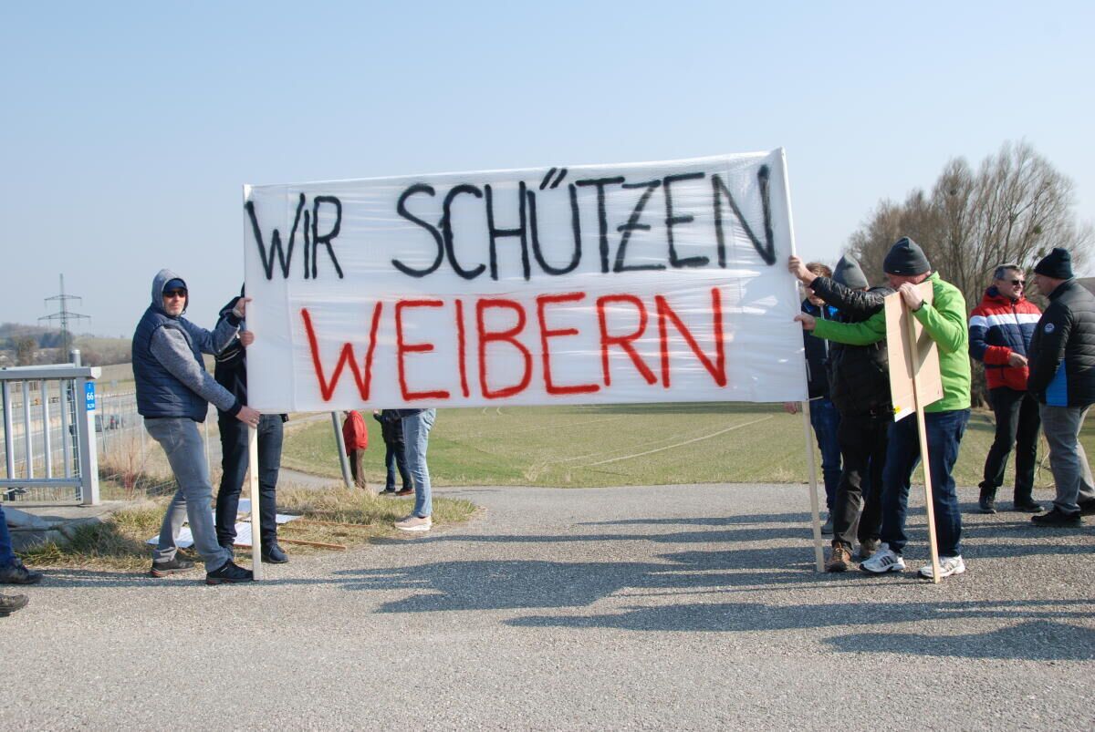 WEIBERN. Die Bürgerinitiative „Wir schützen Weibern“ demonstrierte auf dem Gelände des geplanten Asfinag- Parkplatzes. Die Initiatoren befürchten, dass bei dem Projekt über die Köpfe der Bürger hinweg entschieden wird.