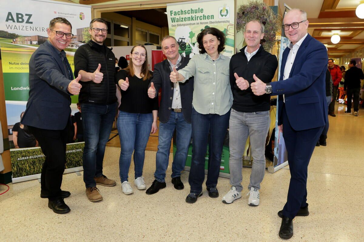 Die Organisatoren, Direktorstellvertreter Günther Hinterholzer und die Koordinatorinnen Anna Humer sowie Birgit Stoiber von der Fachschule Waizenkirchen sowie Obmann Günther Baschinger und Hans Moser von der WKO Grieskirchen, freuen sich über den Erfolg der Veranstaltung. Das Ausbildungsmodell „LandWirtschaft“ wird auch im ABZ Waizenkirchen, das im September 2026 seinen Betrieb aufnimmt, weitergeführt.
