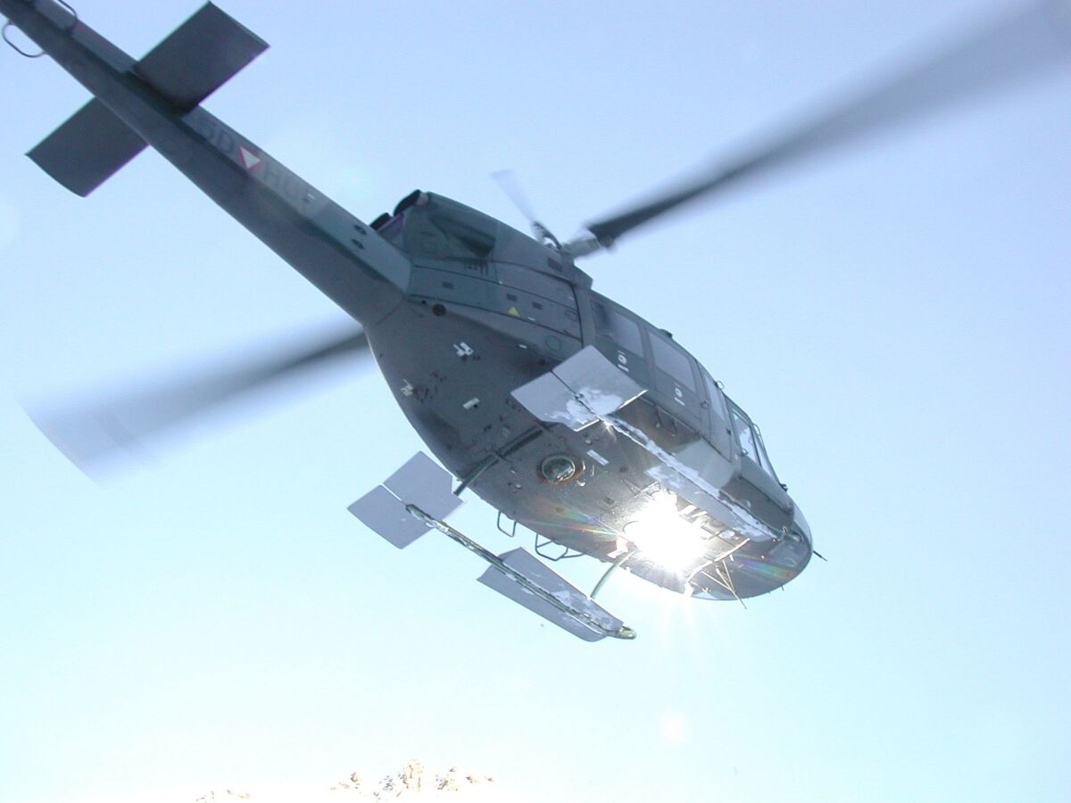 Zwei Agusta Bell 212-Hubschrauber des Bundesheeres bringen die 66 Schüler ins Tal. Die Schüler aus Dortmund, die in Grünau ihren Skikurs verbringen, konnten seit Tagen nicht mehr abfahren: Wegen eines Stromausfalls sind die Lifte auf dem Kasberg außer Betrieb.
