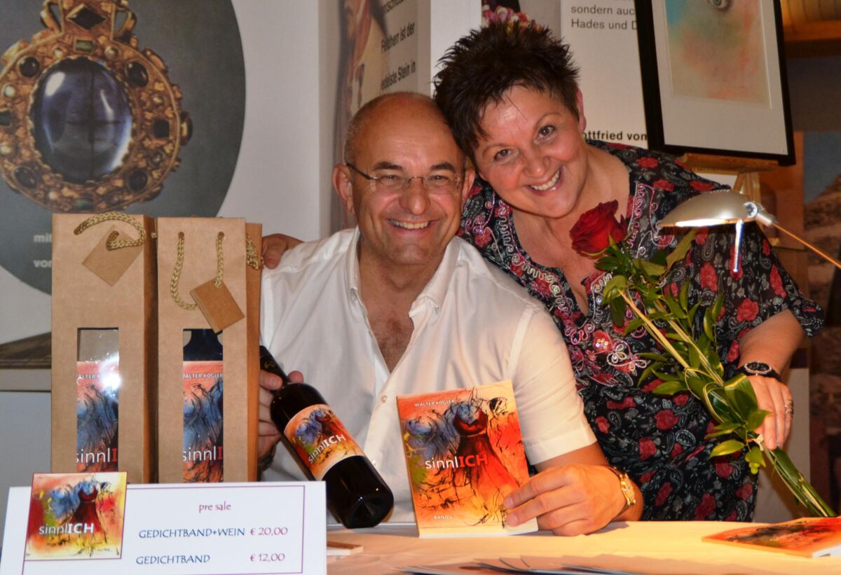 MAISSAU. Am Freitag, den 4. September präsentierte Walter Kogler seinen sechsten Gedichtband, sinnlICH, in der Amethystwelt Maissa. Und die Buch- und Weinpräsentation samt Vernissage war ein voller Erfolg. Tolles Publikum, begeisternde Texte von Walter Kogler und die wunderbare Stimme von Angelina Nigischer-Traxler, fantastische Bilder von Claudia Hüttl und hervorragende Weine vom Winzer Kurt Hummel. Der Tenor der handelnden Akteure: „Sowas mach ma wida, es war echt „sinnlICH“ !“