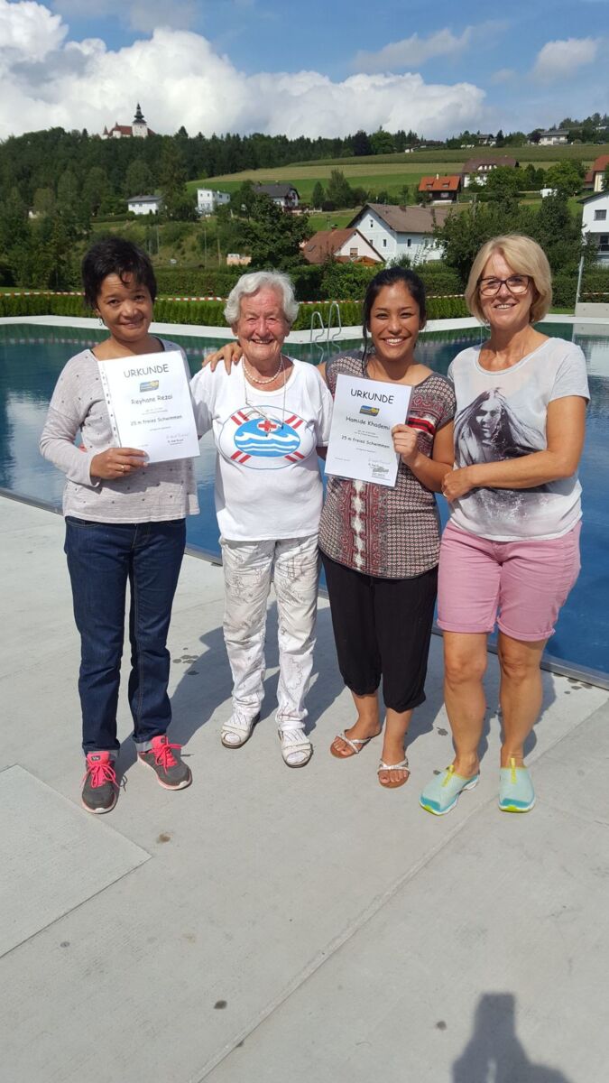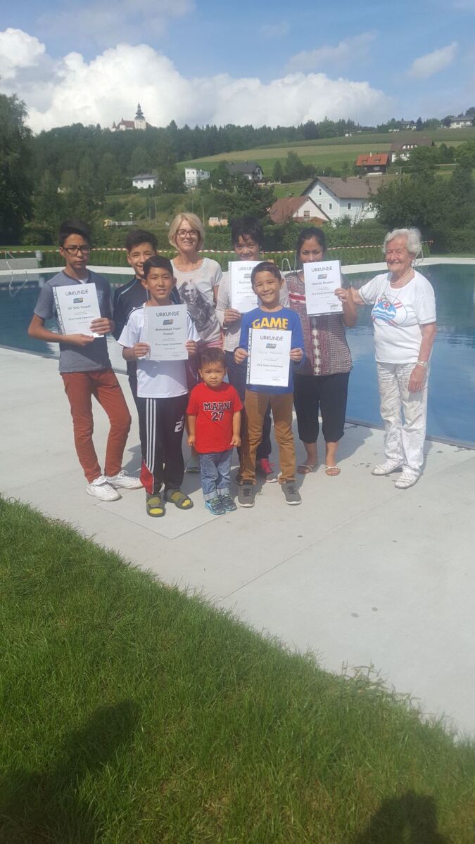 Ende August wurde sechs Teilnehmern im Freibad Kefermarkt ein Zertifikat für ihre Leistung überreicht. Vor allem die beiden Asylwerberinnen hat es großen Mut gekostet, an dem Kurs teilzunehmen. Dass sie im Freibad schwimmen gelernt haben, zählt für alle Beteiligten als großer Integrationserfolg.