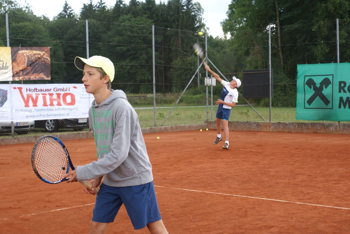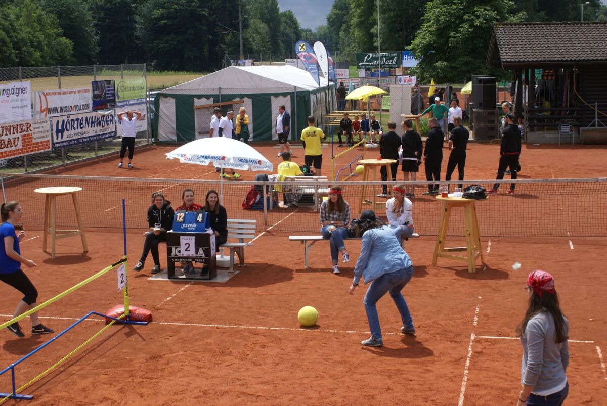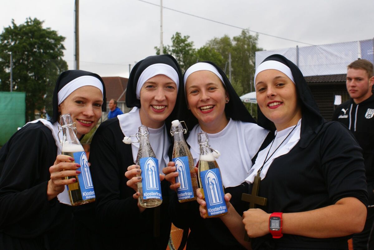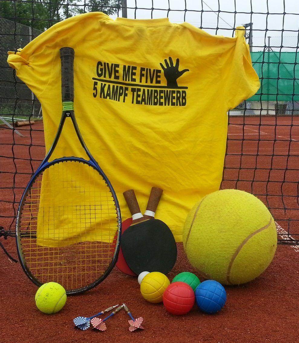 Am Samstag, den 15. Juli fand am Tennisplatz Kematen bereits zum vierten Mal der beliebte Team-Fünfkampf statt. Heuer meldeten sich erstmals 32 (!) Viererteams, um sich in den fünf Disziplinen Tennis, Boccia, Tischtennis, Dart und Fußballtennis zu messen. Die sportlichen Leistungen steigen von Jahr zu Jahr und auch der Spaß kommt nicht zu kurz! Die Kreativwertung für die besten Kostüme sicherten sich erneut vier Fußballerinnen, die als „Schiedlberger Nonnenoase“ bereits in der Früh bei leichtem Regen mit Weihrauch, Klosterfrau Melissengeist und Autogrammkarten eintrafen. Im Zuge der Siegerehrung sorgten sie mit einer extra einstudierten Choreografie für den künstlerischen Höhepunkt des Tages. Auf sportlicher Eben hat sich in der Raiffeisen-Trophy der Erstrundenverlierer das Team „Jens bitte zur Turnierleitung“ vor den „Lückenbüßern“ – die mit nur einem Erwachsenen und vier Kindern antraten – durchgesetzt. In der Sparkassen-Trophy gab es dank zahlreicher neuer Teams einige Überraschungen. So musste sich das 2015 siegreiche Team des „Pub Landerl“ bereits im Viertelfinale geschlagen geben und im Halbfinale erwischte es auch die Titelverteidiger des „Powerteams“ gegen die überraschend starke Truppe der „Raika Kematen“, die sich damit den Finaleinzug sicherte. Den Tagessieg holten sich jedoch die Tennisspieler des Steinhauser Teams „Lehner-Tech“, die heuer erstmals dabei waren. Selbst eine einstündige Regenunterbrechung brachte die Organisatoren des Freundeskreis Kematen – der für das leibliche Wohl und die tolle Partystimmung zuständig war – und die 25 Schiedsrichter des TV Kematen nicht aus der Ruhe und nach der Siegerehrung wurde bis in die frühen Morgenstunden ausgiebig gefeiert, wobei viele Teams bereits wieder für das GIVE ME 5 im Jahr 2018 zugesagt haben!