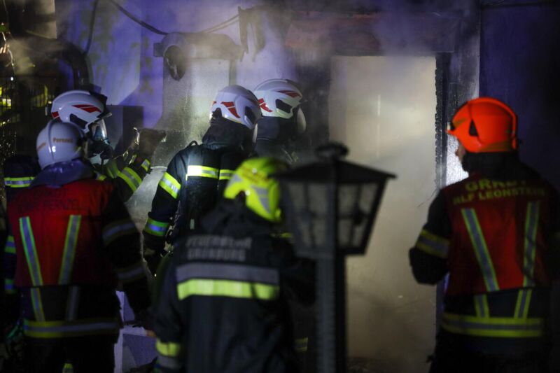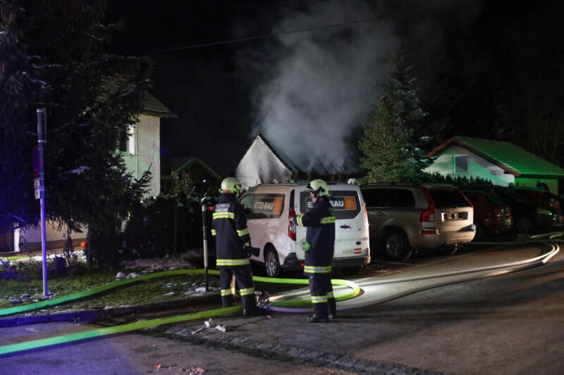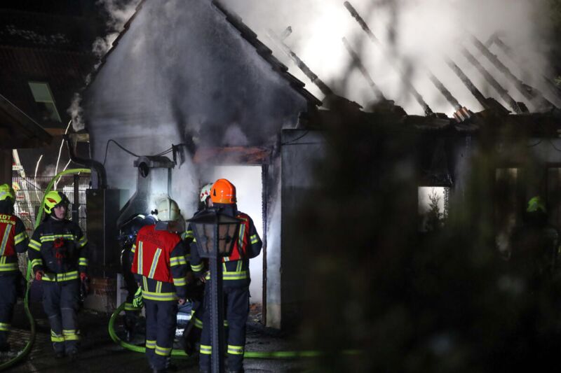 GRÜNBURG. Vier Feuerwehren standen in der Nacht auf Montag in Grünburg beim Brand eines Nebengebäudes neben einem Wohnhaus im Einsatz.